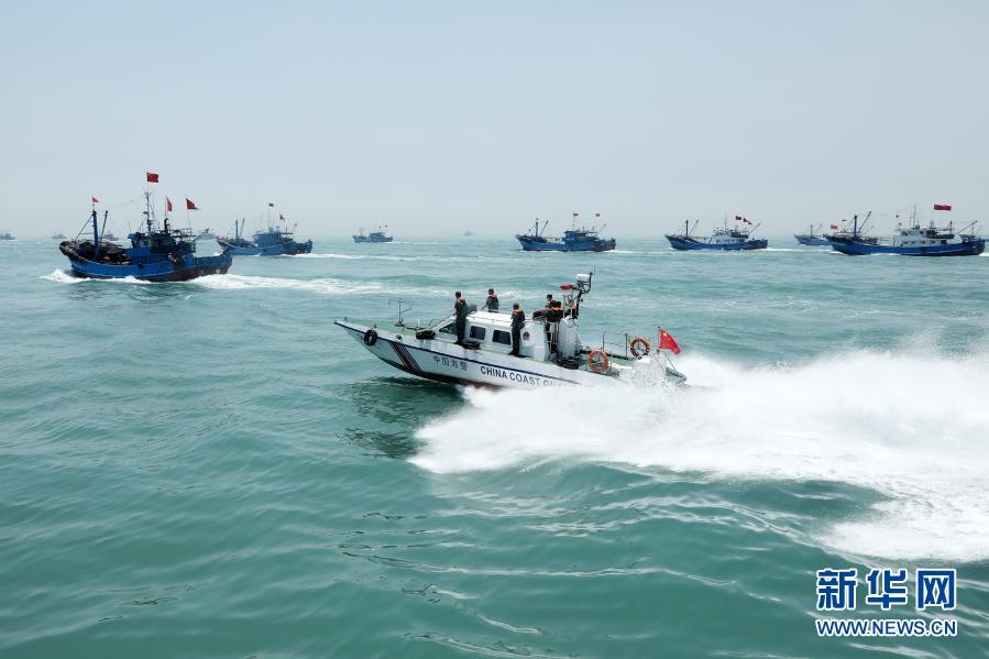 海警執(zhí)法員加強(qiáng)海域巡邏,防止黑惡勢力滋擾作業(yè)漁船(8月16日攝)。新華社發(fā)(翟少華攝)