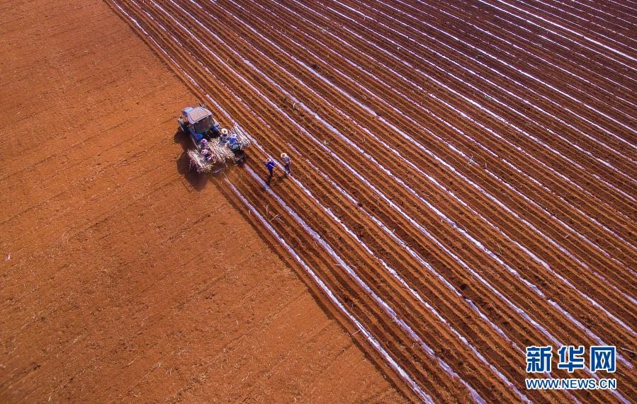 這是1月28日在廣東湛江拍攝的耕作畫(huà)面(無(wú)人機(jī)照片)。新華社發(fā)