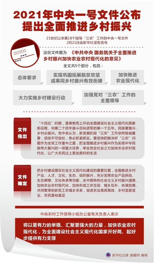 文件指出,“十四五”時(shí)期,是乘勢而上開啟全面建設(shè)社會主義現(xiàn)代化國家新征程、向第二個百年奮斗目標(biāo)進(jìn)軍的第一個五年。民族要復(fù)興,鄉(xiāng)村必振興。黨中央認(rèn)為,新發(fā)展階段“三農(nóng)”工作依然極端重要,須臾不可放松,務(wù)必抓緊抓實(shí)。要堅(jiān)持把解決好“三農(nóng)”問題作為全黨工作重中之重,把全面推進(jìn)鄉(xiāng)村振興作為實(shí)現(xiàn)中華民族偉大復(fù)興的一項(xiàng)重大任務(wù),舉全黨全社會之力加快農(nóng)業(yè)農(nóng)村現(xiàn)代化,讓廣大農(nóng)民過上更加美好的生活。
