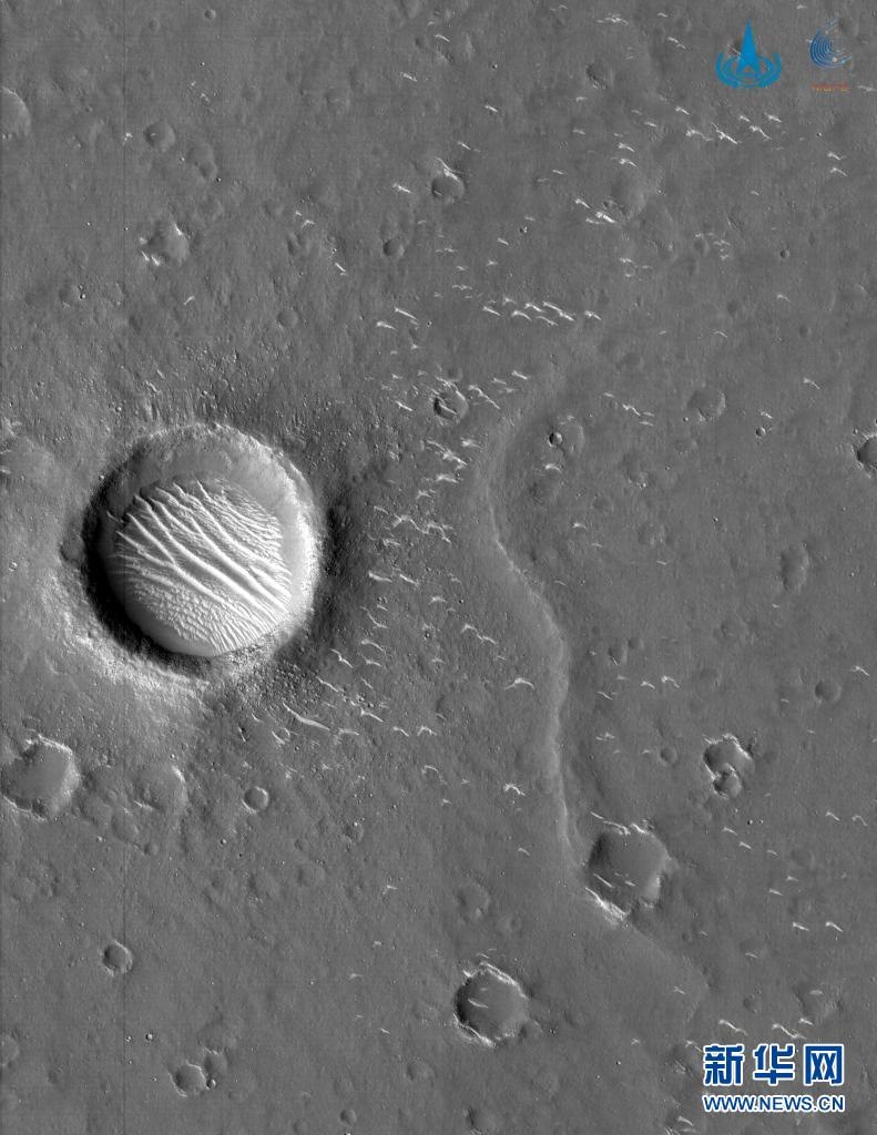 ——首拍火星,成功獲取中國(guó)首幅近火圖像。2021年2月5日,國(guó)家航天局發(fā)布了天問一號(hào)在距離火星約220萬公里處,獲取的首幅火星圖像。本次成像采用環(huán)繞器高分辨率相機(jī)的黑白成像模式。