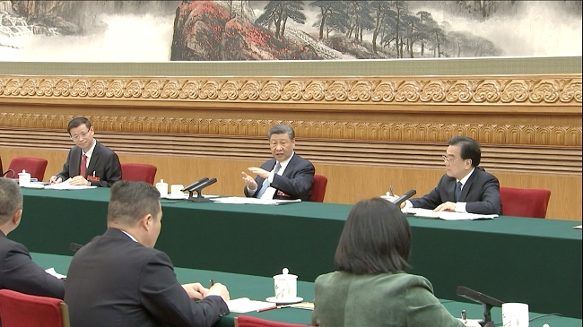 “我們要堅(jiān)持中國特色社會(huì)主義政治發(fā)展道路,堅(jiān)持和完善人民代表大會(huì)制度,加強(qiáng)和改進(jìn)新時(shí)代人大工作,不斷發(fā)展全過程人民民主,鞏固和發(fā)展生動(dòng)活潑、安定團(tuán)結(jié)的政治局面?!绷?xí)近平說。