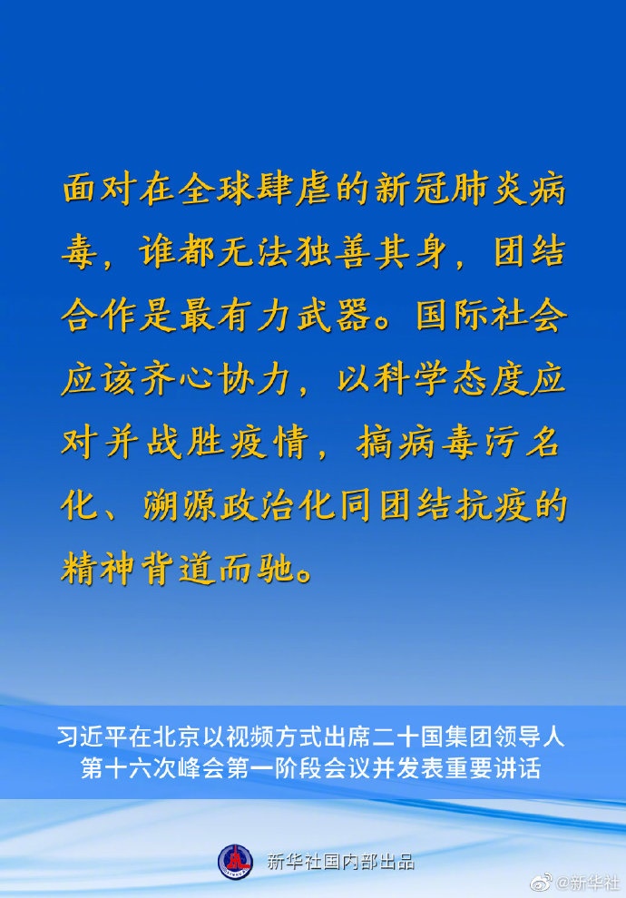 國(guó)家主席習(xí)近平10月30日在北京以視頻方式出席二十國(guó)集團(tuán)領(lǐng)導(dǎo)人第十六次峰會(huì)第一階段會(huì)議并發(fā)表重要講話(huà)。講話(huà)有哪些要點(diǎn),一起來(lái)看↓