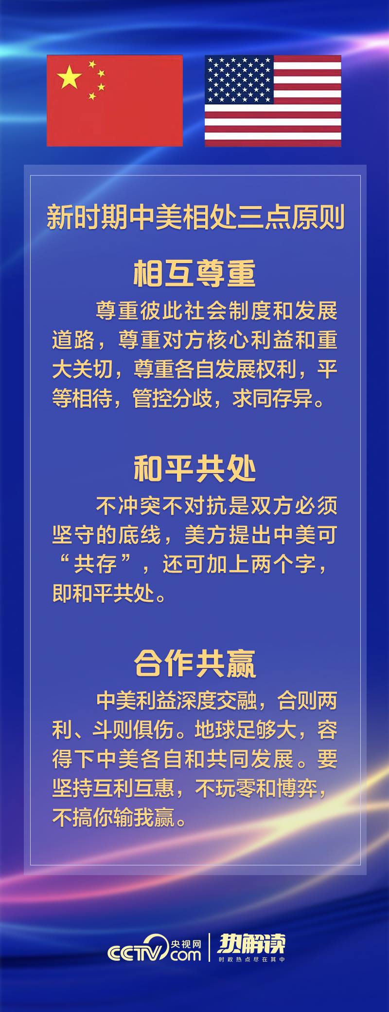 對(duì)于中美在一些問(wèn)題上的不同看法,習(xí)主席反復(fù)強(qiáng)調(diào),要聚焦合作、管控分歧。增多接觸、加強(qiáng)溝通,有助于準(zhǔn)確了解彼此的政策意圖,避免誤解誤判。
