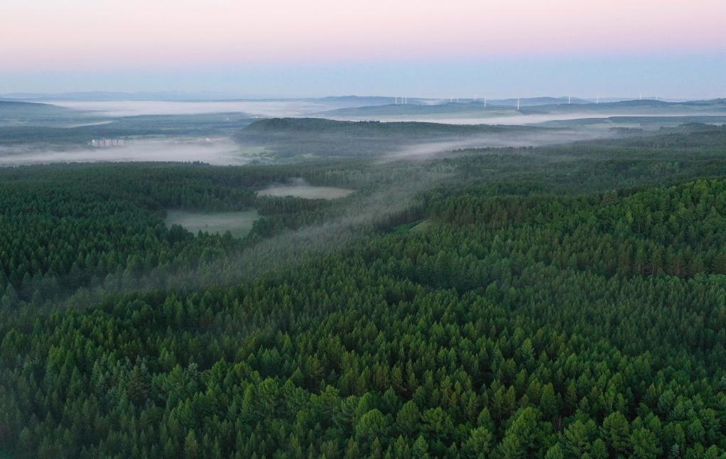 2021年6月27日拍攝的塞罕壩國家森林公園晨景(無人機(jī)照片)。新華社記者楊世堯攝