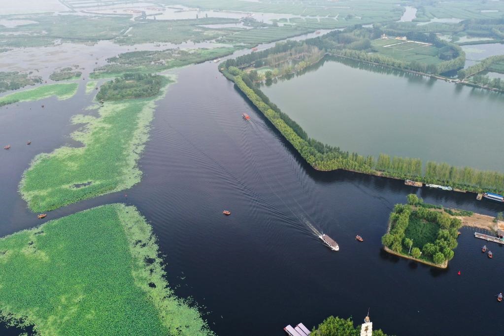 這是河北雄安新區(qū)白洋淀淀區(qū)景色(2021年7月15日,無人機(jī)拍攝)。新華社記者朱旭東攝