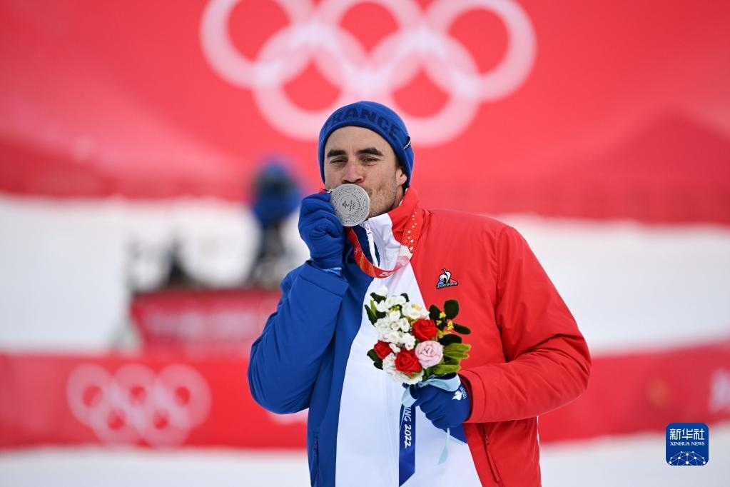 2月7日,高山滑雪男子滑降項(xiàng)目亞軍、法國選手約翰·克拉雷在獎牌頒發(fā)儀式上。新華社記者 陳斌 攝