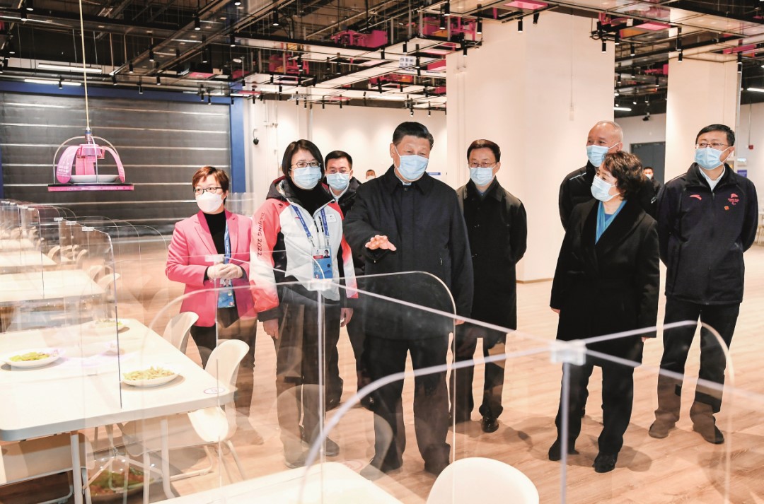 2022年1月4日,中共中央總書記、國家主席、中央軍委主席習(xí)近平在北京考察2022年冬奧會(huì)、冬殘奧會(huì)籌辦備賽工作。圖為1月4日上午,習(xí)近平在北京冬奧會(huì)、冬殘奧會(huì)主媒體中心智慧餐廳,察看智能餐飲設(shè)備運(yùn)行情況。圖/新華社記者