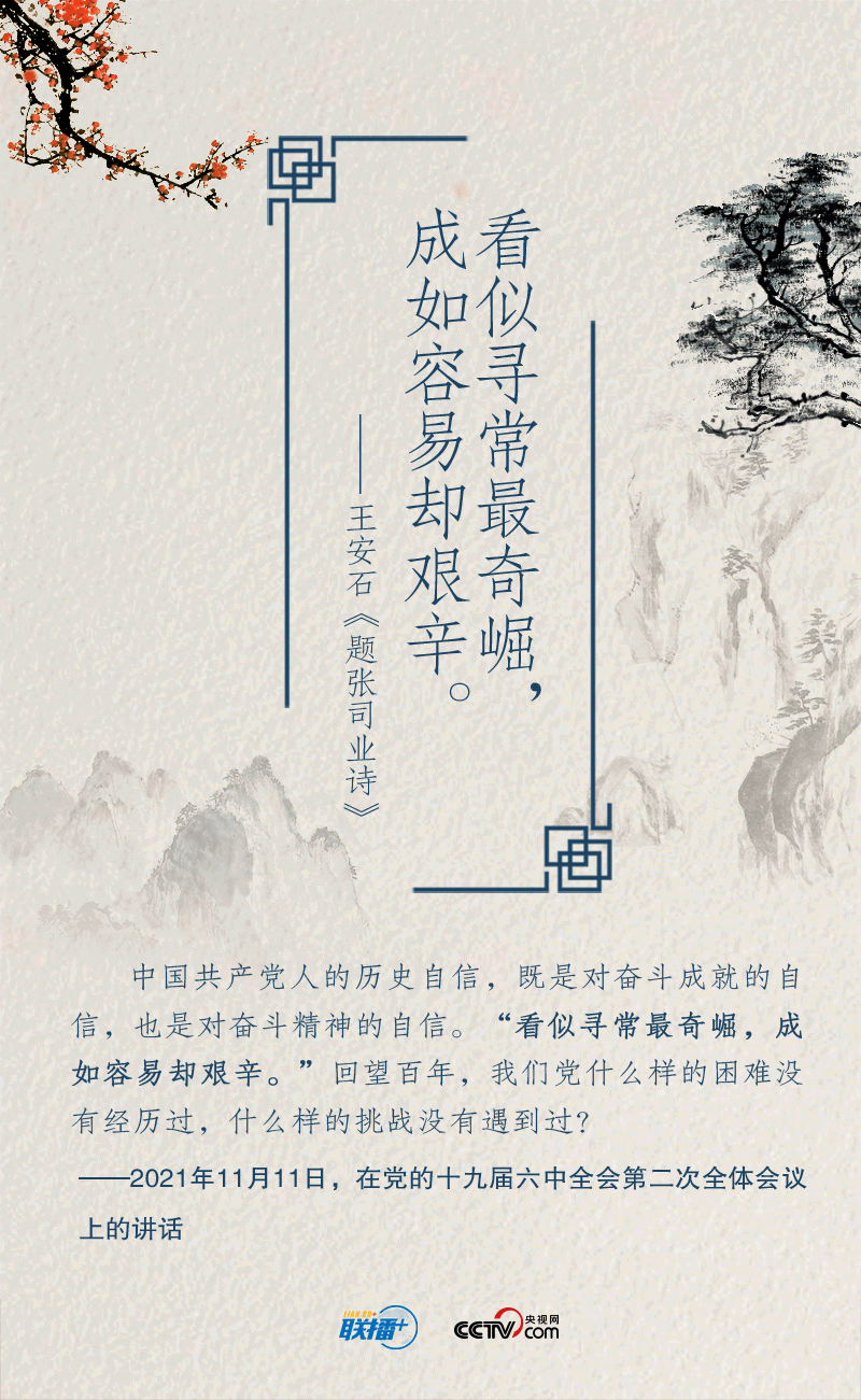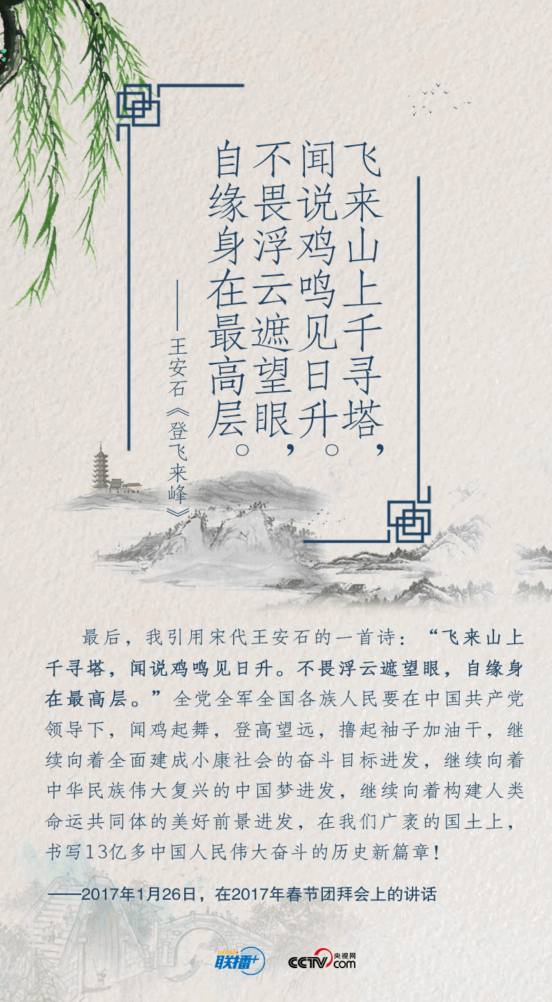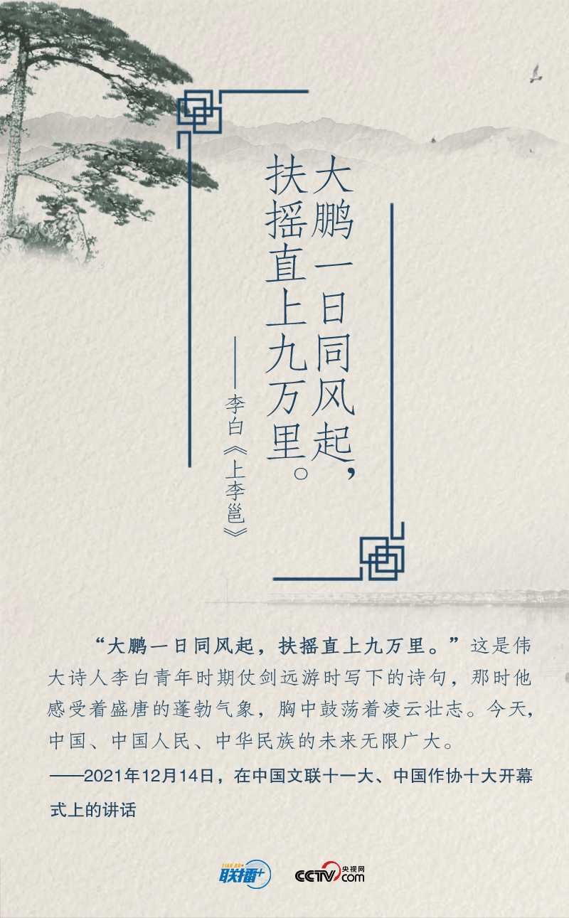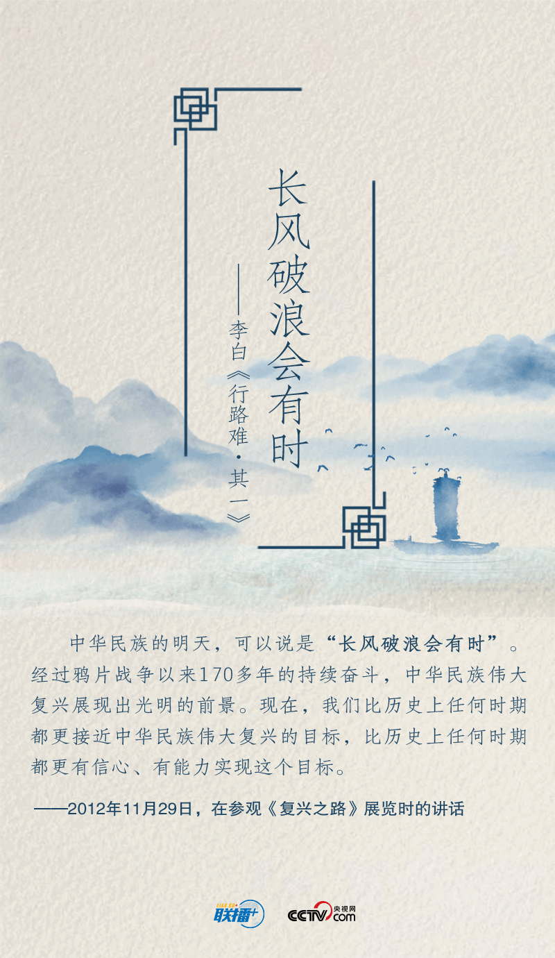 黨的十八大以來,在實現(xiàn)中華民族偉大復(fù)興中國夢的征途中,習(xí)近平總書記就“奮斗”作出一系列重要論述。以“長風(fēng)破浪會有時”展望中華民族的明天,用“不畏浮云遮望眼”號召中華兒女?dāng)]起袖子加油干……總書記多次精妙運(yùn)用經(jīng)典詩詞,凝聚新時代奮斗力量。央視網(wǎng)《聯(lián)播+》特進(jìn)行梳理,與您一起領(lǐng)悟總書記的“奮斗觀”,讓我們在新征程中共同奮斗。