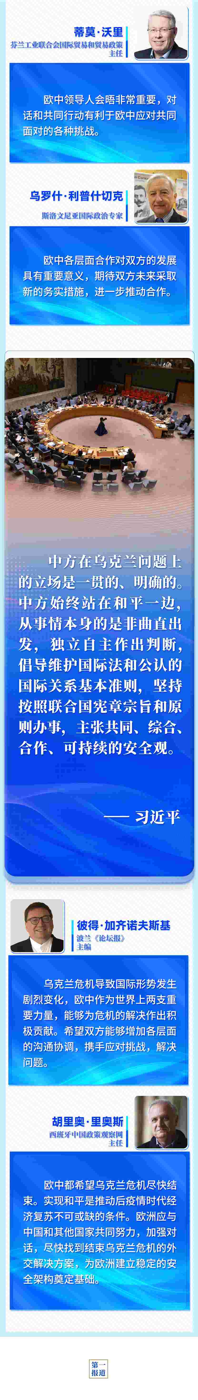 國(guó)家主席習(xí)近平4月1日晚在北京以視頻方式會(huì)見(jiàn)歐洲理事會(huì)主席米歇爾和歐盟委員會(huì)主席馮德萊恩。歐洲多國(guó)人士高度評(píng)價(jià)習(xí)近平主席就中歐關(guān)系、烏克蘭危機(jī)等問(wèn)題提出的重要主張,認(rèn)為會(huì)晤為雙方關(guān)系持續(xù)健康發(fā)展作出戰(zhàn)略引領(lǐng),為復(fù)雜動(dòng)蕩的國(guó)際局勢(shì)注入穩(wěn)定性。
