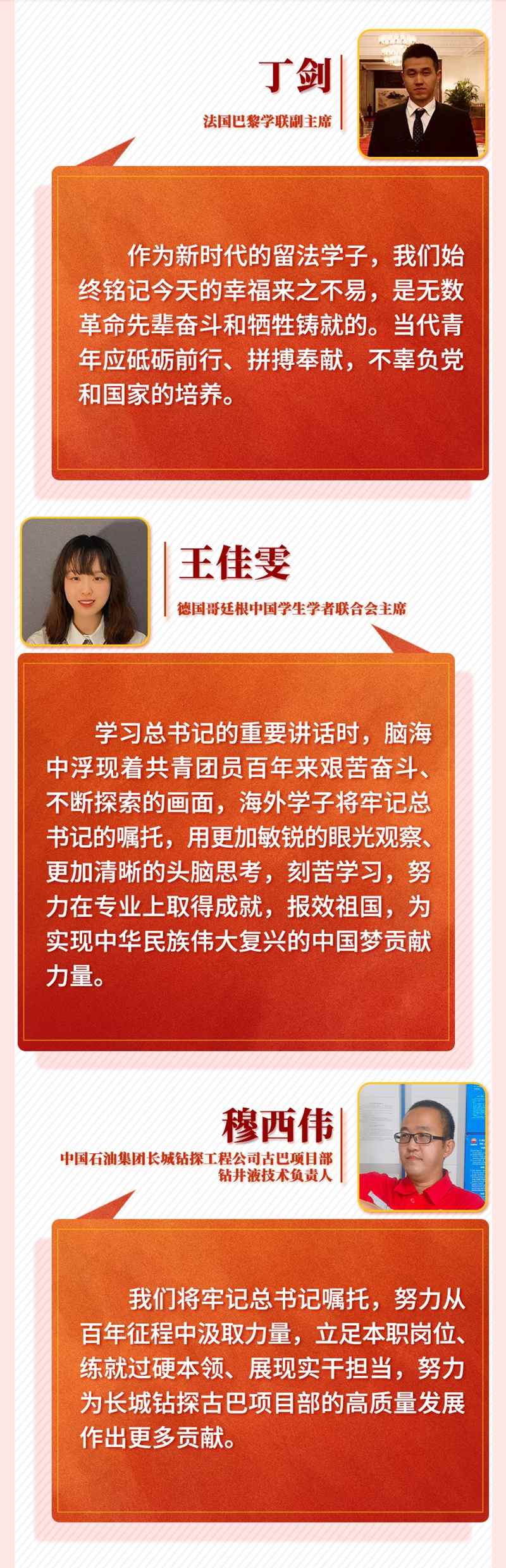 習(xí)近平總書(shū)記的重要講話令身在海外的中國(guó)青年備受鼓舞。他們一致表示,作為新時(shí)代的中國(guó)青年,一定牢記習(xí)近平總書(shū)記囑托,帶著夢(mèng)想和使命,讓青春在海外煥發(fā)異彩,在實(shí)現(xiàn)中華民族偉大復(fù)興中國(guó)夢(mèng)的新征程上奮勇前進(jìn),用青春的智慧和汗水打拼出一個(gè)更加美好的中國(guó)。
