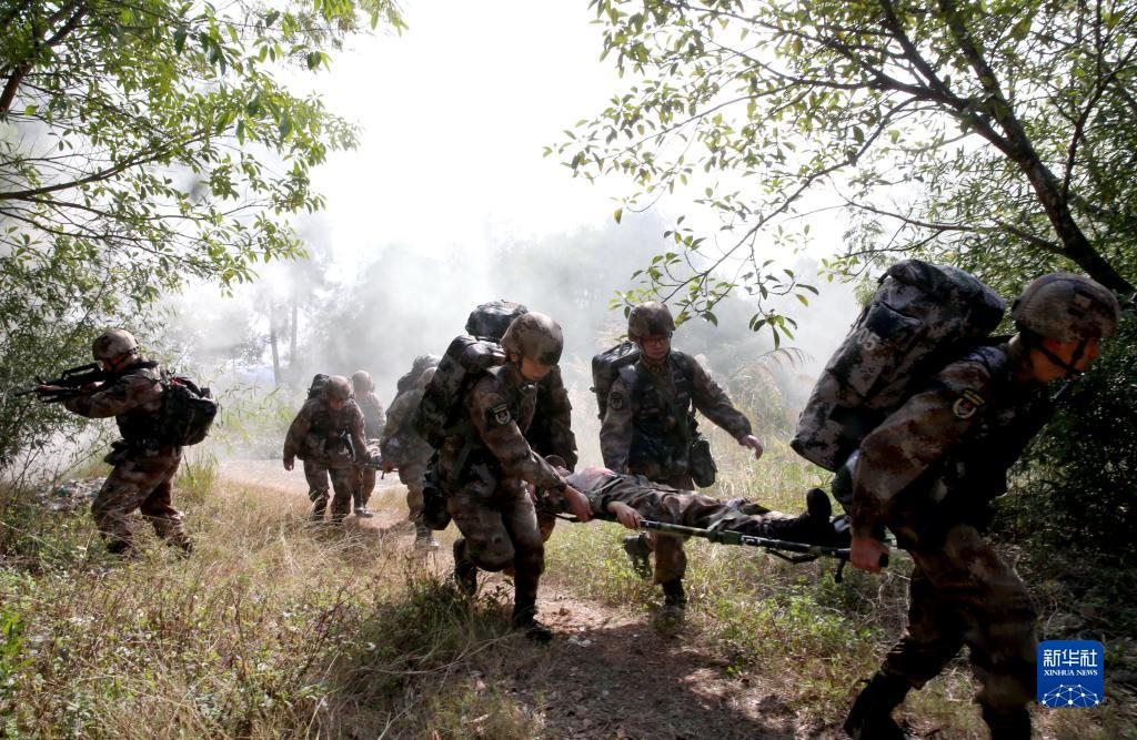 在“西部·聯(lián)合-2021”演習第一次實兵實裝實彈合練中,野戰(zhàn)救護力量為聯(lián)合任務(wù)部隊提供保障(2021年8月5日攝)。新華社記者劉芳攝