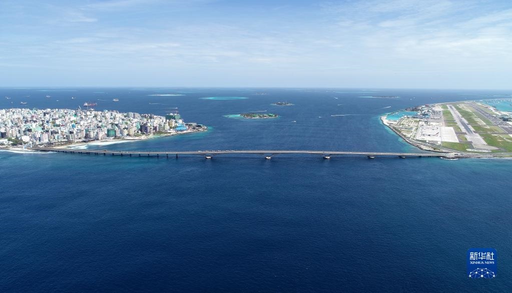 這是在馬爾代夫航拍的連接首都馬累和機(jī)場(chǎng)島的中馬友誼大橋(2019年8月30日攝)。新華社發(fā)(王明亮攝)