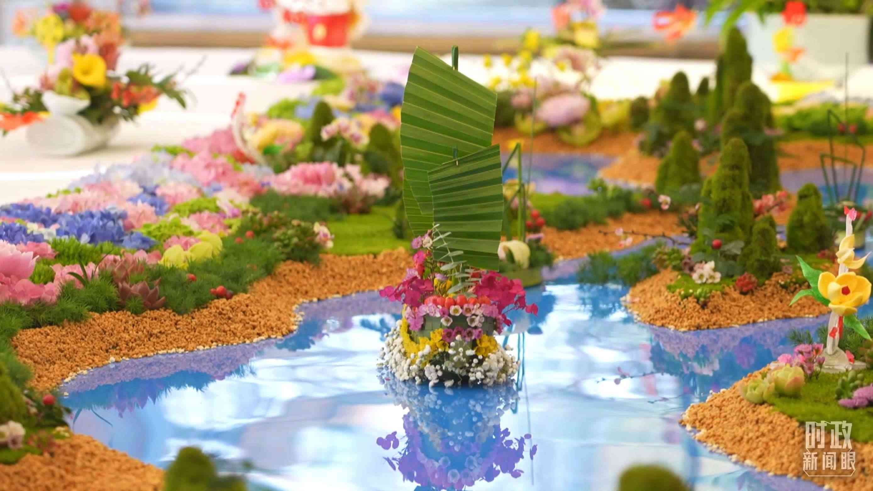 △2月10日會見結(jié)束后,習(xí)近平為洪森舉行了宴會。這是宴會現(xiàn)場的帆船造型。(總臺央視記者蔣碩拍攝)