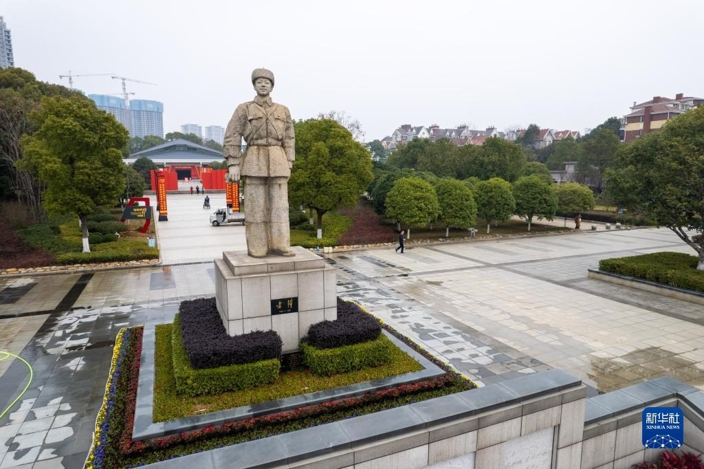 這是3月1日在湖南雷鋒紀念館拍攝的雷鋒雕塑(無人機照片)。新華社記者 陳思汗 攝