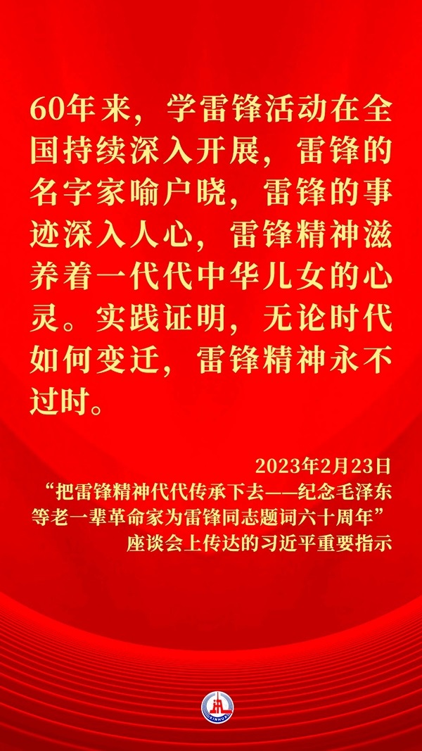 “60年來,學雷鋒活動在全國持續(xù)深入開展,雷鋒的名字家喻戶曉,雷鋒的事跡深入人心,雷鋒精神滋養(yǎng)著一代代中華兒女的心靈?!绷暯娇倳浗諏ι钊腴_展學雷鋒活動作出重要指示。