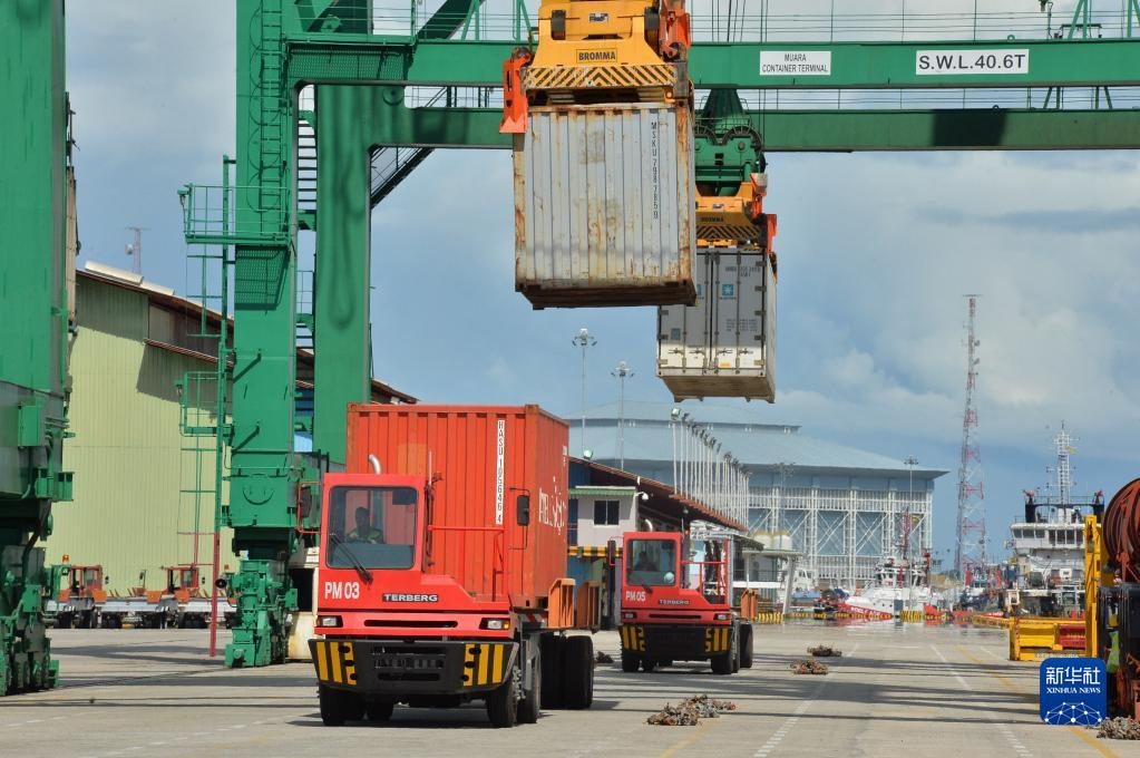 這是2022年1月1日拍攝的正在進行集裝箱裝卸作業(yè)的文萊摩拉港碼頭。文萊摩拉港由中國和文萊合資企業(yè)——摩拉港有限公司運營。2022年1月1日,區(qū)域全面經(jīng)濟伙伴關系協(xié)定(RCEP)生效實施。新華社發(fā)(杰弗里·黃攝)