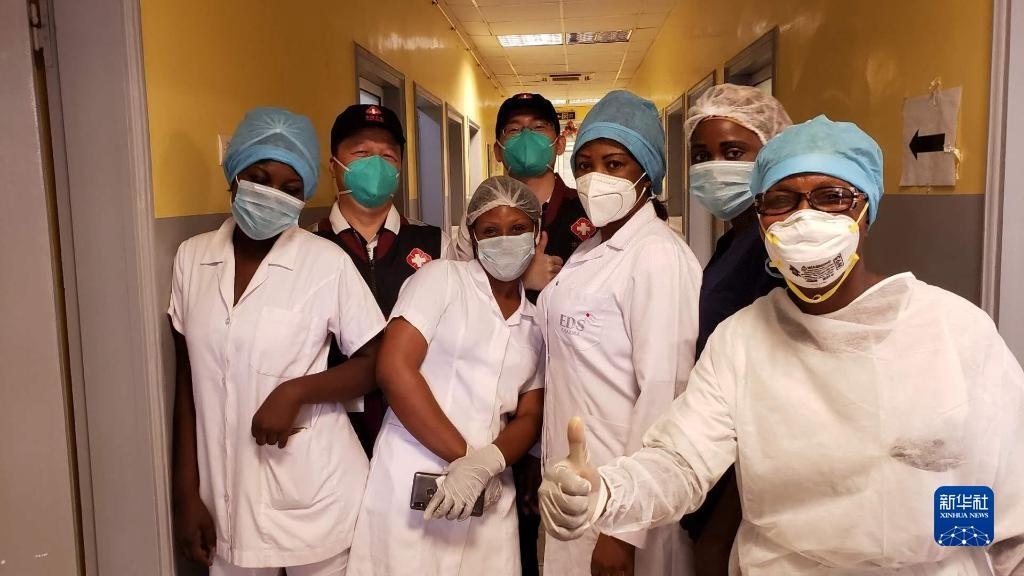 2020年5月26日,中國抗疫醫(yī)療專家組在剛果(布)首都布拉柴維爾指導新冠肺炎病房建設時,與當?shù)匾痪€醫(yī)務人員合影。新華社發(fā)