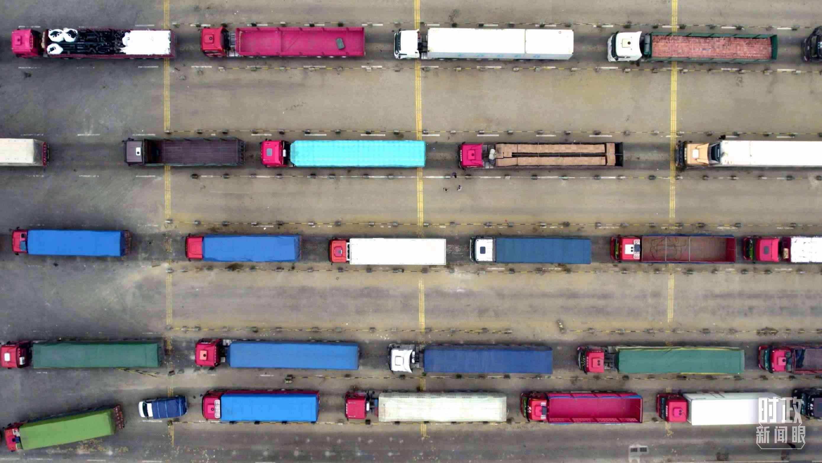 △徐聞港內(nèi)運(yùn)送貨物的車隊(duì)。(總臺(tái)央視記者范凱拍攝)
