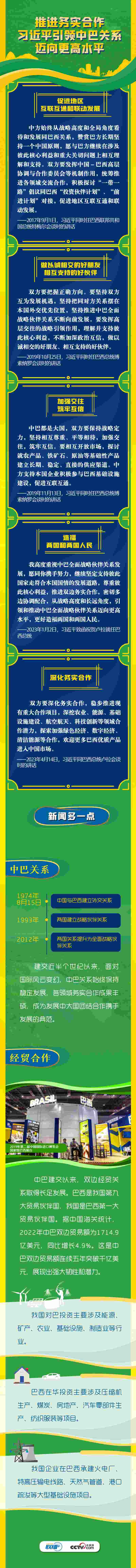 中國(guó)和巴西分別是東西半球最大的發(fā)展中國(guó)家和重要新興市場(chǎng)國(guó)家,互為全面戰(zhàn)略伙伴,擁有廣泛共同利益。習(xí)近平主席曾多次對(duì)中巴關(guān)系表達(dá)“聚焦共同發(fā)展,促進(jìn)務(wù)實(shí)合作”的期望。央視網(wǎng)《聯(lián)播+》梳理相關(guān)內(nèi)容,與您一起學(xué)習(xí)。