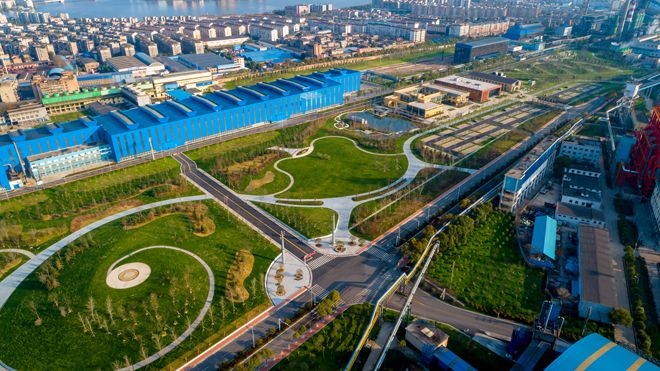 走進長江邊的寶武集團鄂城鋼鐵有限公司廠區(qū),一片綠意盎然,看不出這是一家有著60多年歷史的鋼鐵廠。街對面是游客中心,掛著2021年12月30日由文旅部頒發(fā)的“AAA國家級旅游景區(qū)”金色牌匾。