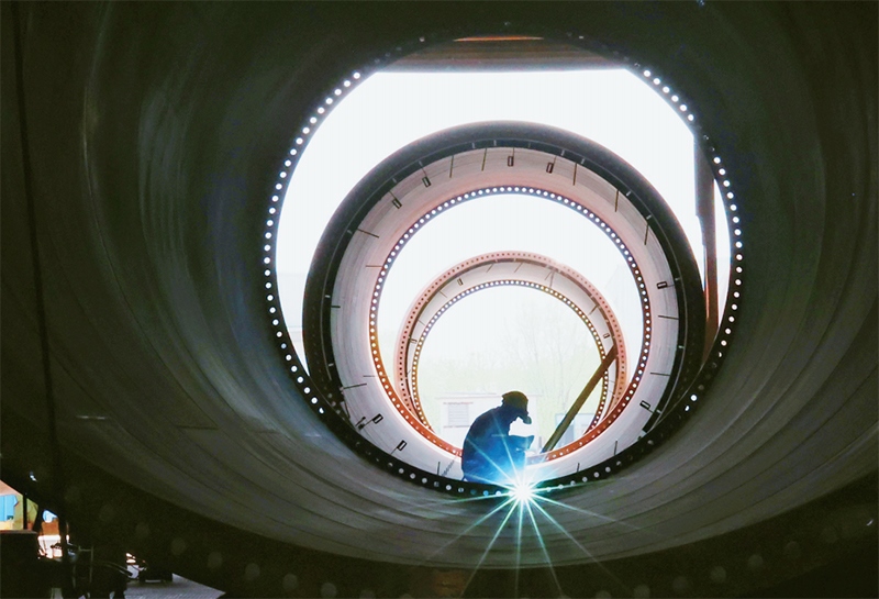 2023年一季度,我國(guó)國(guó)內(nèi)生產(chǎn)總值同比增長(zhǎng)4.5%,國(guó)民經(jīng)濟(jì)開局良好,為實(shí)現(xiàn)全年發(fā)展目標(biāo)奠定了基礎(chǔ),注入了信心。圖為2023年4月18日,工人在江蘇連云港經(jīng)濟(jì)技術(shù)開發(fā)區(qū)一家公司內(nèi)加工組裝風(fēng)電塔筒。 中新社發(fā) 耿玉和/攝