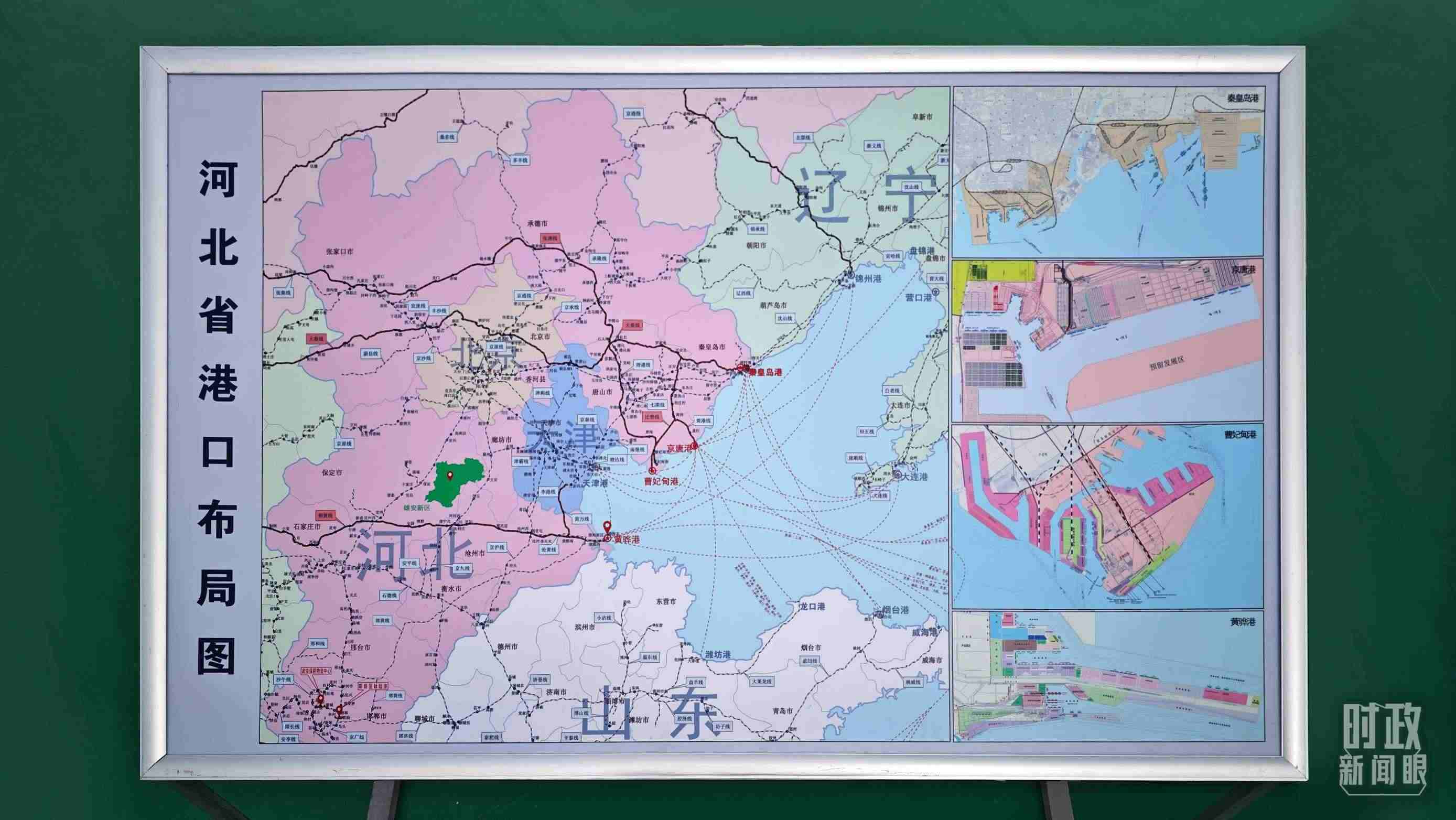 △河北省港口布局圖展示。(總臺(tái)央視記者彭漢明拍攝)