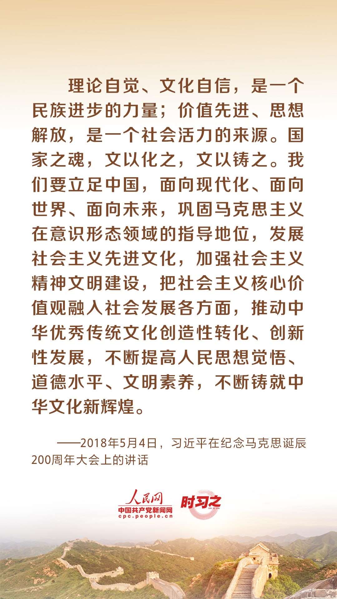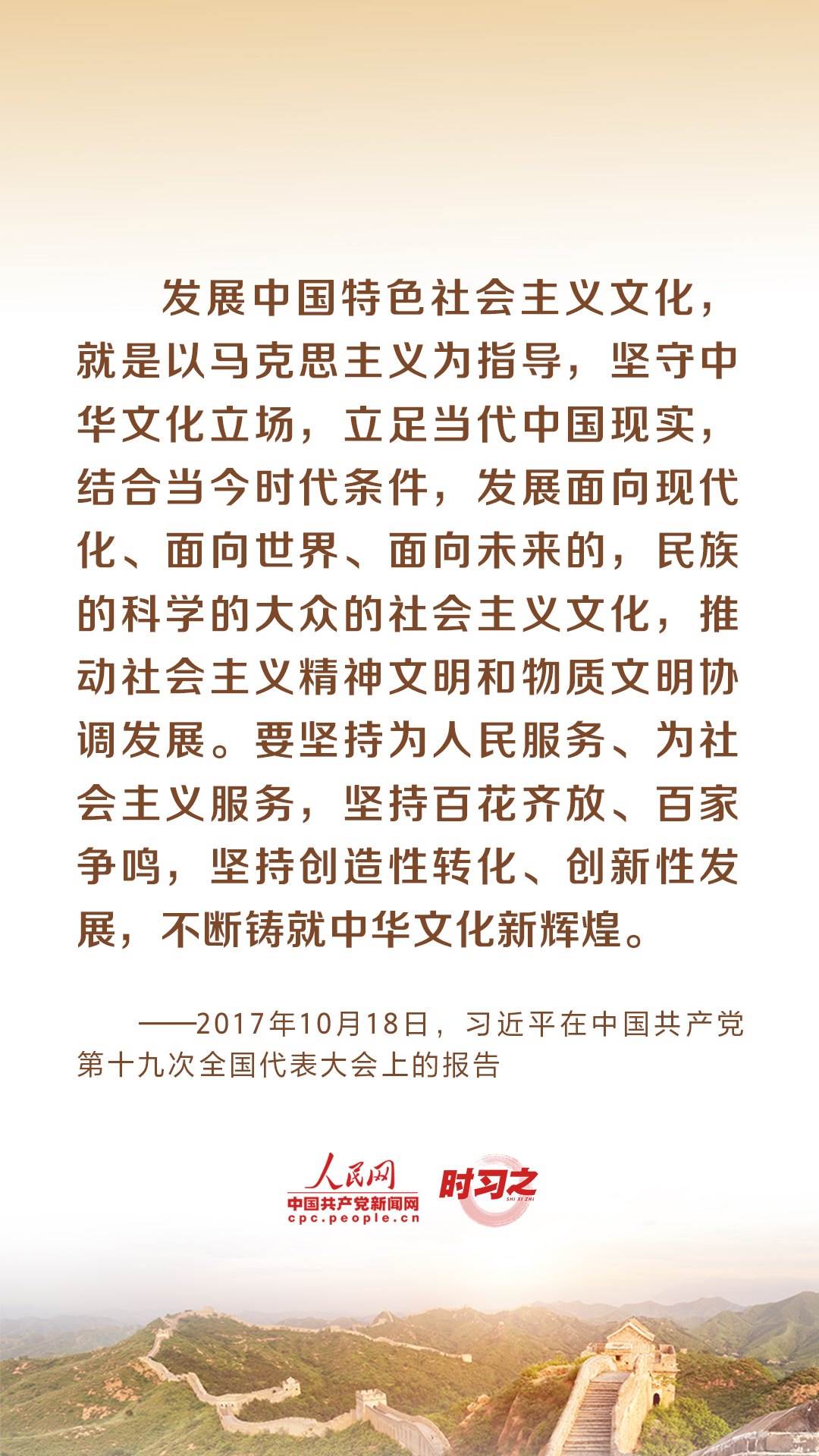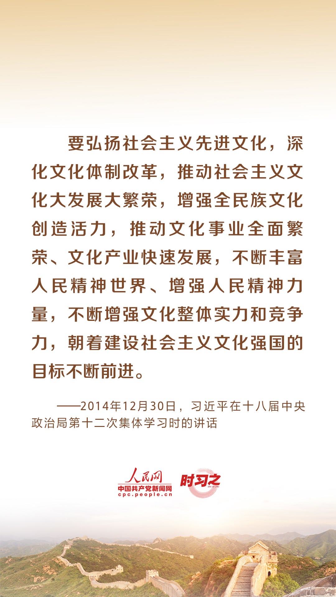“理論自覺(jué)、文化自信,是一個(gè)民族進(jìn)步的力量;價(jià)值先進(jìn)、思想解放,是一個(gè)社會(huì)活力的來(lái)源?!秉h的十八大以來(lái),習(xí)近平總書記就文化建設(shè)提出了一系列新理念新思想新戰(zhàn)略,引領(lǐng)中華文化創(chuàng)造性轉(zhuǎn)化、創(chuàng)新性發(fā)展。推動(dòng)弘揚(yáng)和發(fā)展社會(huì)主義先進(jìn)文化,習(xí)近平多次作出重要闡釋。