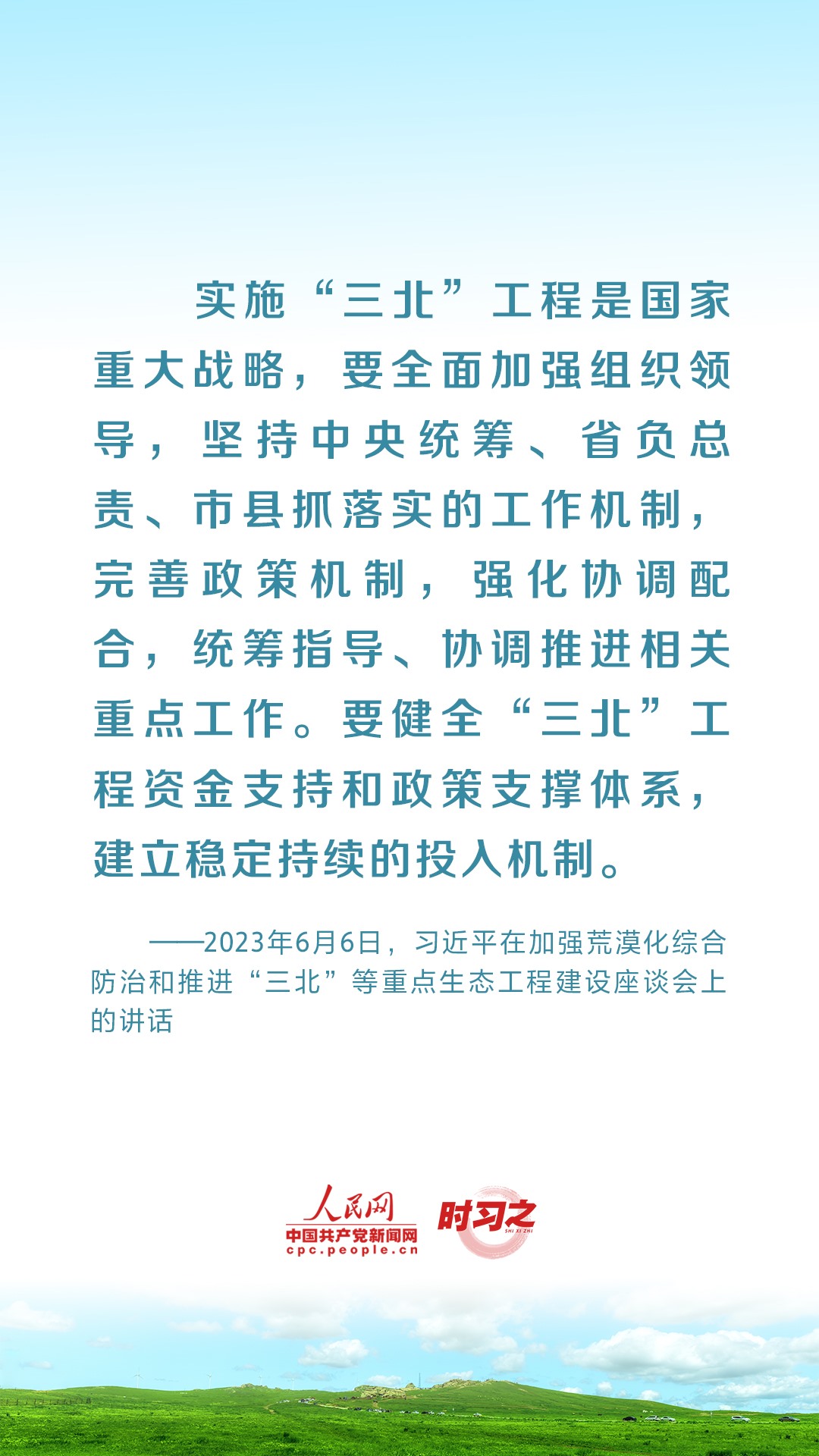 2023年6月5日至6日,中共中央總書記、國家主席、中央軍委主席習(xí)近平在內(nèi)蒙古自治區(qū)巴彥淖爾市考察,主持召開加強(qiáng)荒漠化綜合防治和推進(jìn)“三北”等重點(diǎn)生態(tài)工程建設(shè)座談會(huì)并發(fā)表重要講話。座談會(huì)上,習(xí)近平對(duì)走好中國特色防沙治沙道路提出工作要求。