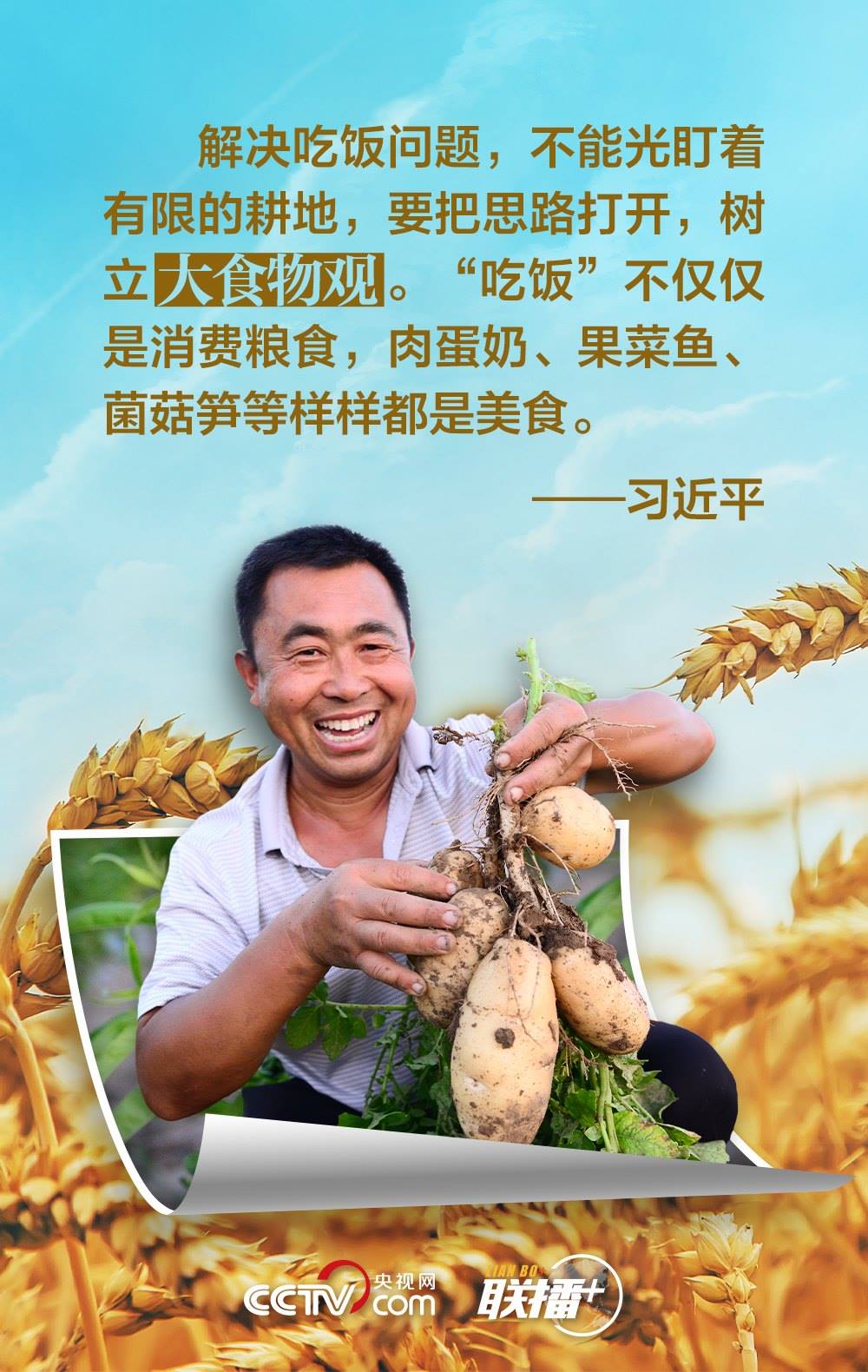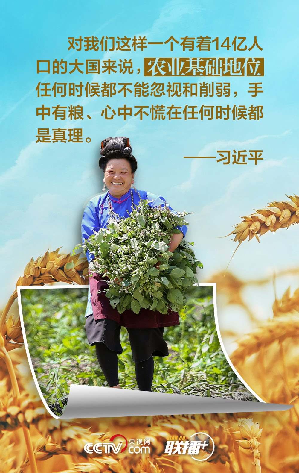 夏糧是全年糧食生產(chǎn)的第一季,約占我國全年糧食產(chǎn)量的五分之一,主要包括夏收的谷物、豆類和薯類等?!笆种杏屑Z,心中不慌?!绷?xí)近平總書記十分重視糧食安全,他強(qiáng)調(diào),中國人的飯碗任何時(shí)候都要牢牢端在自己手中,飯碗主要裝中國糧。值此夏收時(shí)節(jié),央視網(wǎng)《聯(lián)播+》與您一起學(xué)習(xí)領(lǐng)悟總書記的糧食觀。