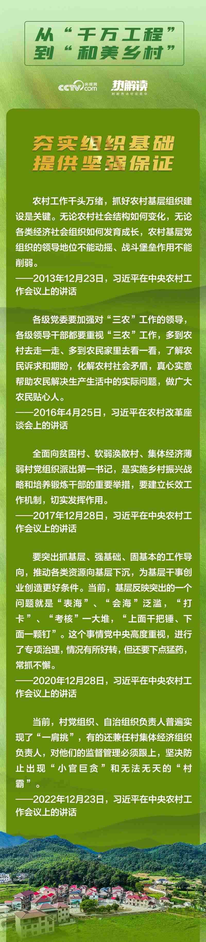 辦好農(nóng)村的事情,基層黨組織必須堅(jiān)強(qiáng),黨員隊(duì)伍必須過(guò)硬。鄉(xiāng)村振興各項(xiàng)政策,最終要靠農(nóng)村基層黨組織來(lái)落實(shí)。習(xí)近平總書記在黨的二十大報(bào)告中強(qiáng)調(diào),“堅(jiān)持大抓基層的鮮明導(dǎo)向,抓黨建促鄉(xiāng)村振興”,“建設(shè)宜居宜業(yè)和美鄉(xiāng)村”。
