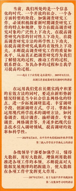 在全黨大興調(diào)查研究之風(fēng)的今天,讓我們重溫總書(shū)記的有關(guān)論述,跟著總書(shū)記學(xué)習(xí)調(diào)查研究。