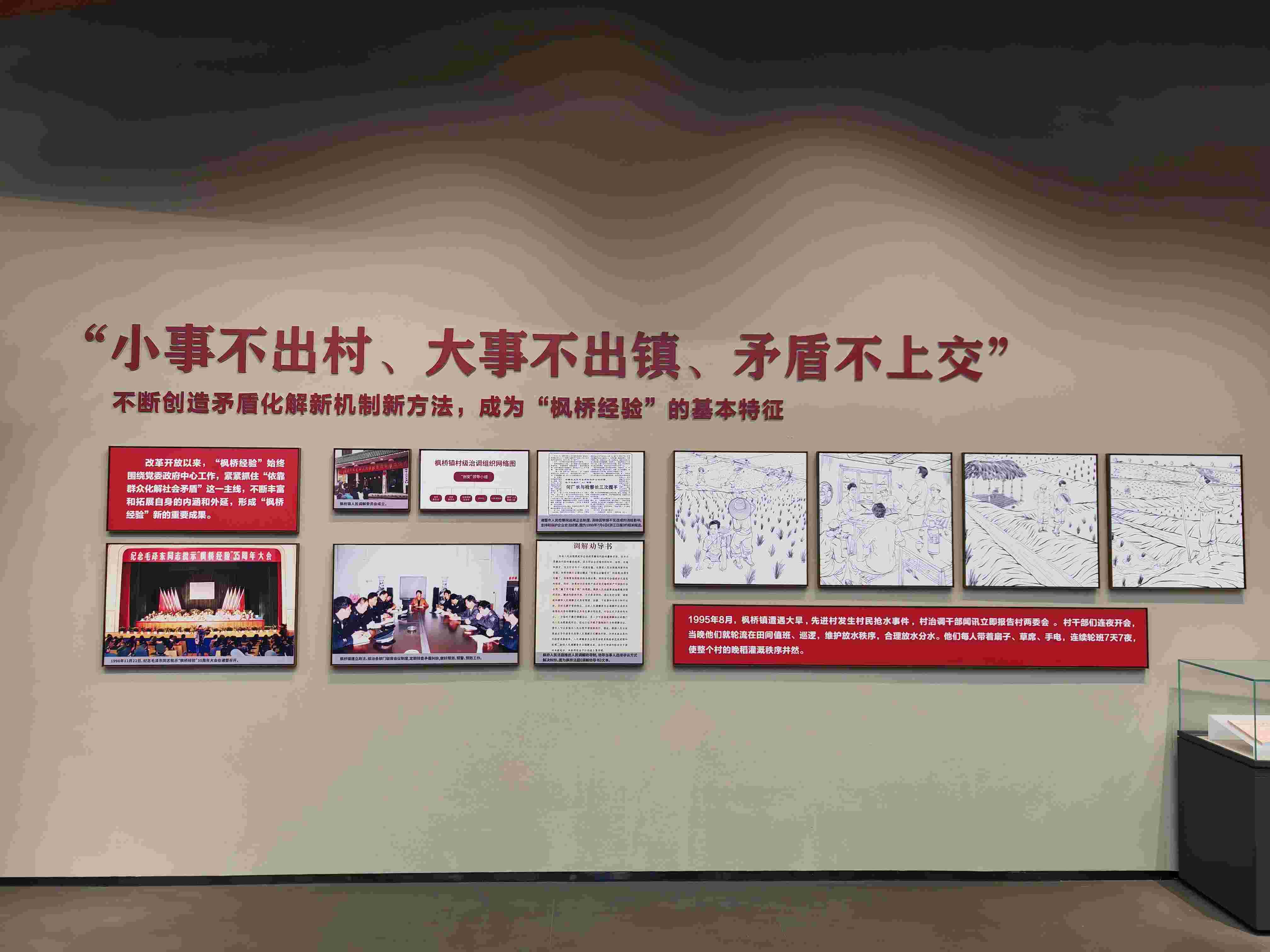 △改革開放以來,“楓橋經(jīng)驗”不斷豐富和拓展。圖為楓橋經(jīng)驗陳列館里的相關內(nèi)容展示。(總臺央廣記者馬喆拍攝)