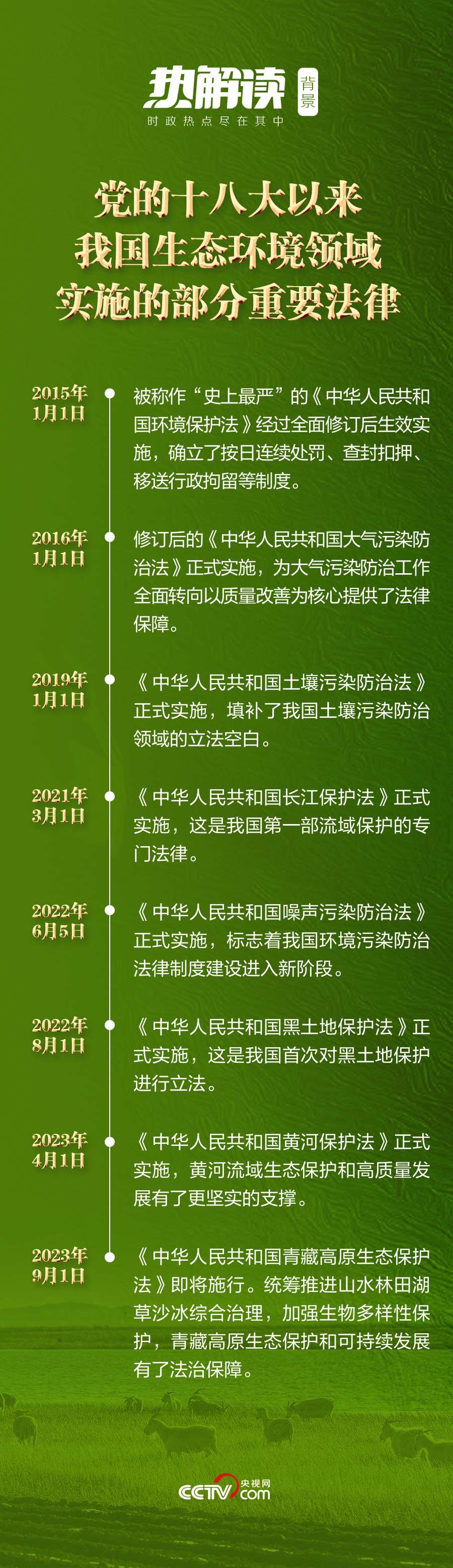 黨的十八大以來,越織越密的生態(tài)文明制度體系成為生態(tài)文明建設的有力保障。將“生態(tài)文明建設”寫入憲法,制定和修改長江保護法、土地管理法、森林法等,我國生態(tài)環(huán)境立法實現(xiàn)了從量到質(zhì)的全面提升。