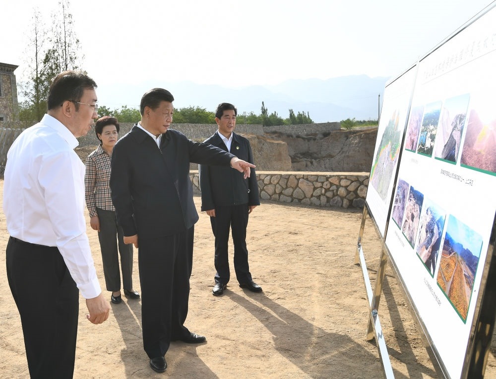 2020年6月9日下午,習(xí)近平在寧夏銀川市西夏區(qū)賀蘭山東麓,聽(tīng)取賀蘭山生態(tài)保護(hù)和環(huán)境綜合整治情況匯報(bào)。