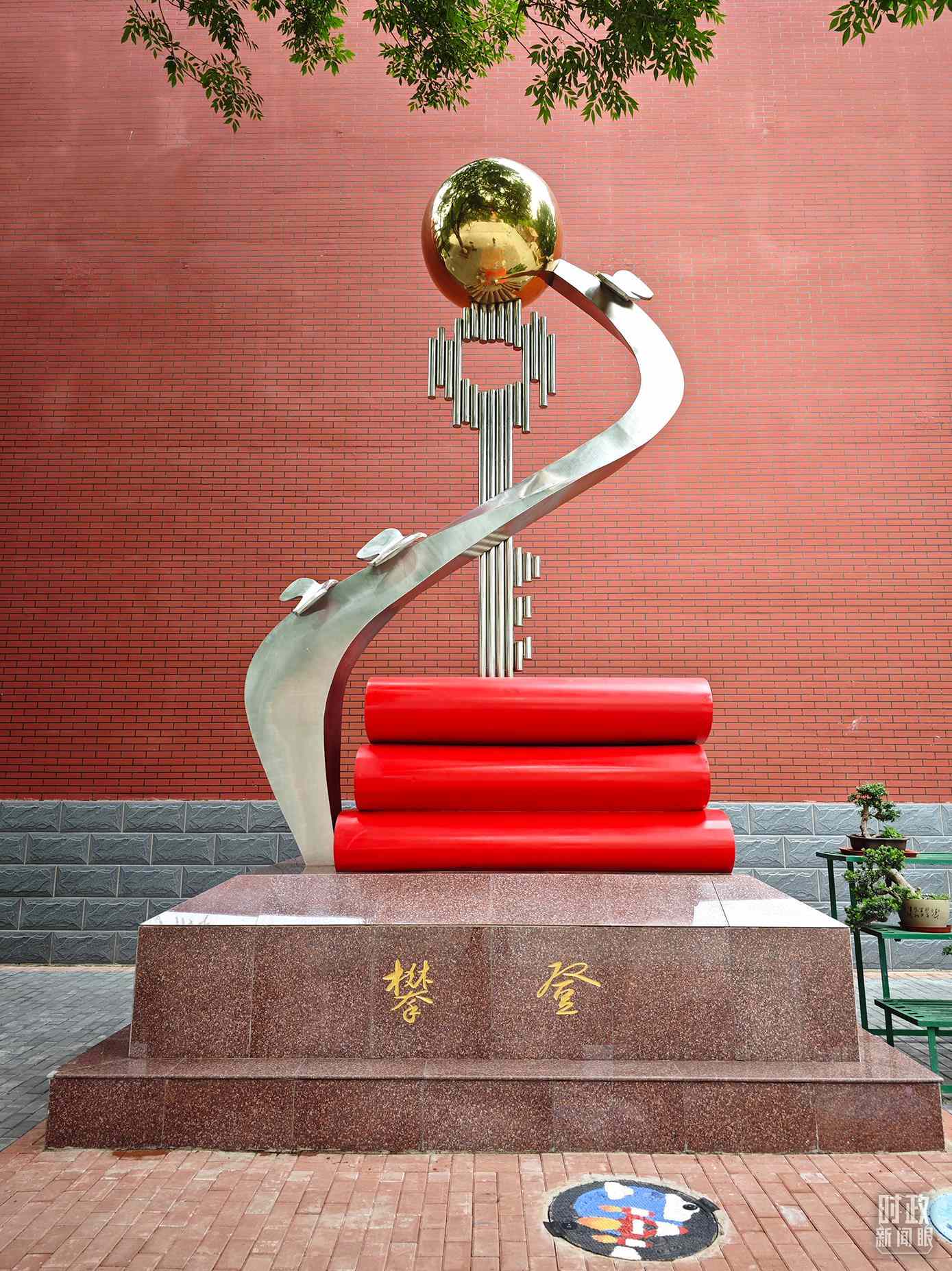 △北京育英學(xué)校內(nèi)的“攀登”雕塑。(總臺(tái)央視記者彭漢明拍攝)