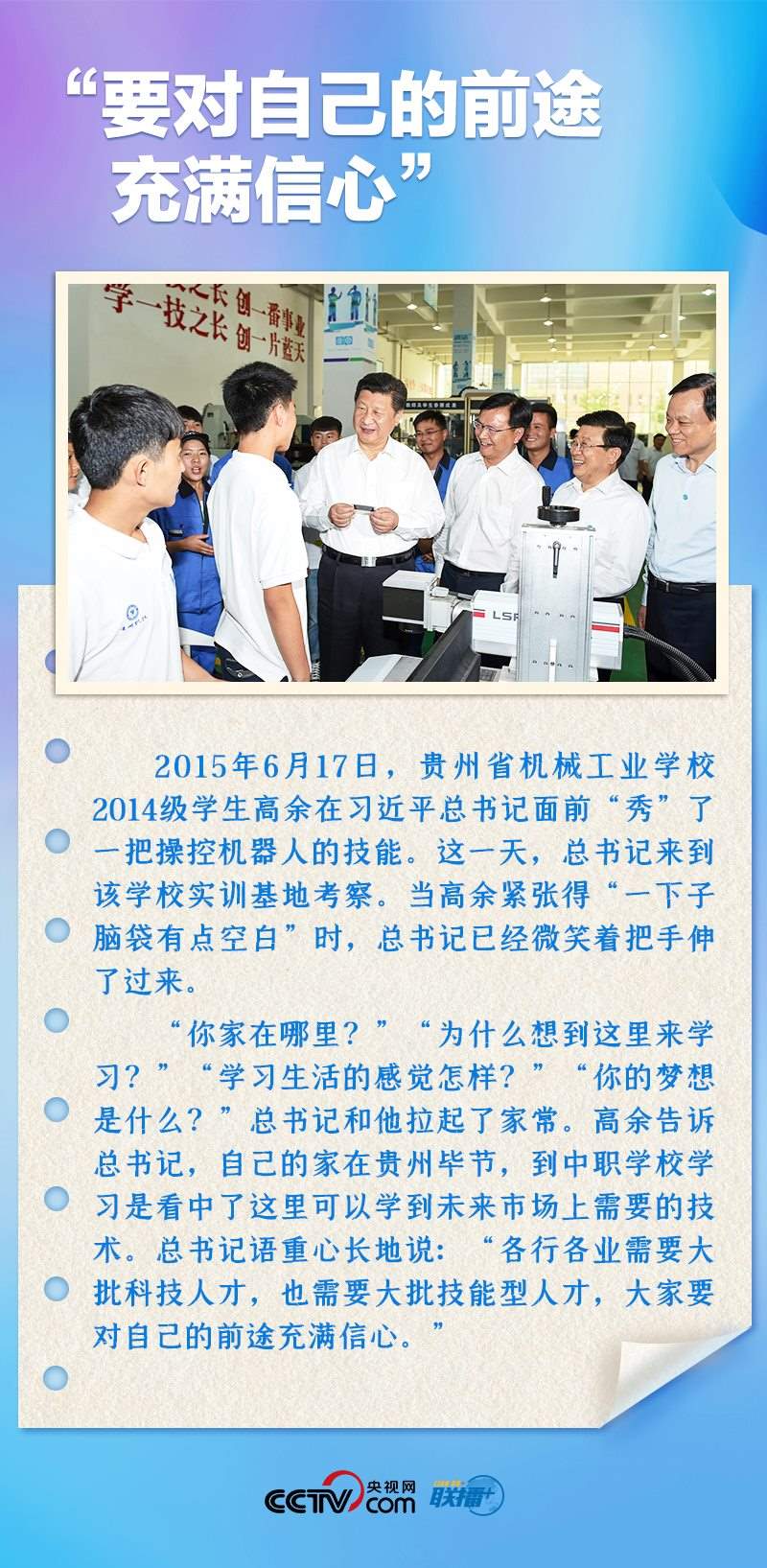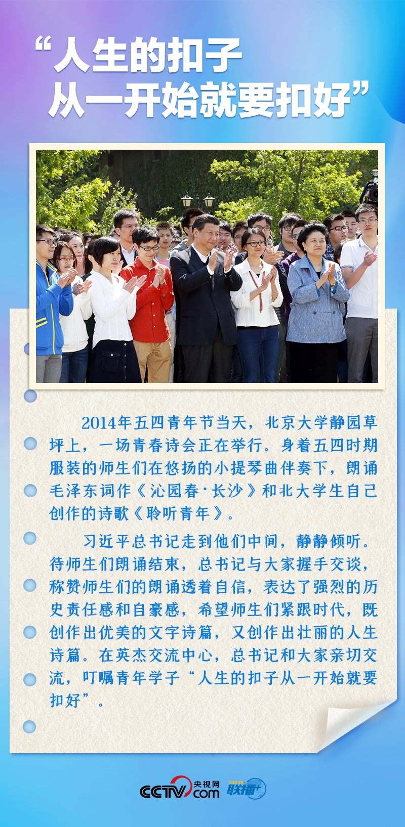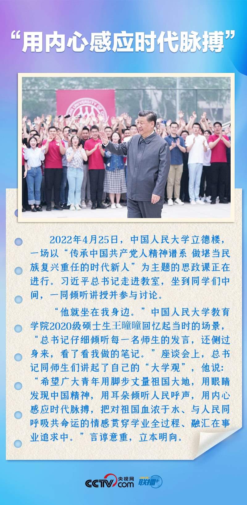 習近平總書記非常關心青年成長,多次來到青年中間,同大家推心置腹談理想信念、談人生價值、談奮斗奉獻。