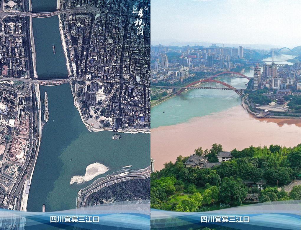 長(zhǎng)江、金沙江、岷江在宜賓市主城區(qū)交匯,形成了三江匯流的壯闊景象。習(xí)近平來到三江口,眺望三江交匯處,聽取當(dāng)?shù)赝七M(jìn)長(zhǎng)江流域生態(tài)修復(fù)保護(hù)、實(shí)施長(zhǎng)江水域禁捕退捕等情況介紹。