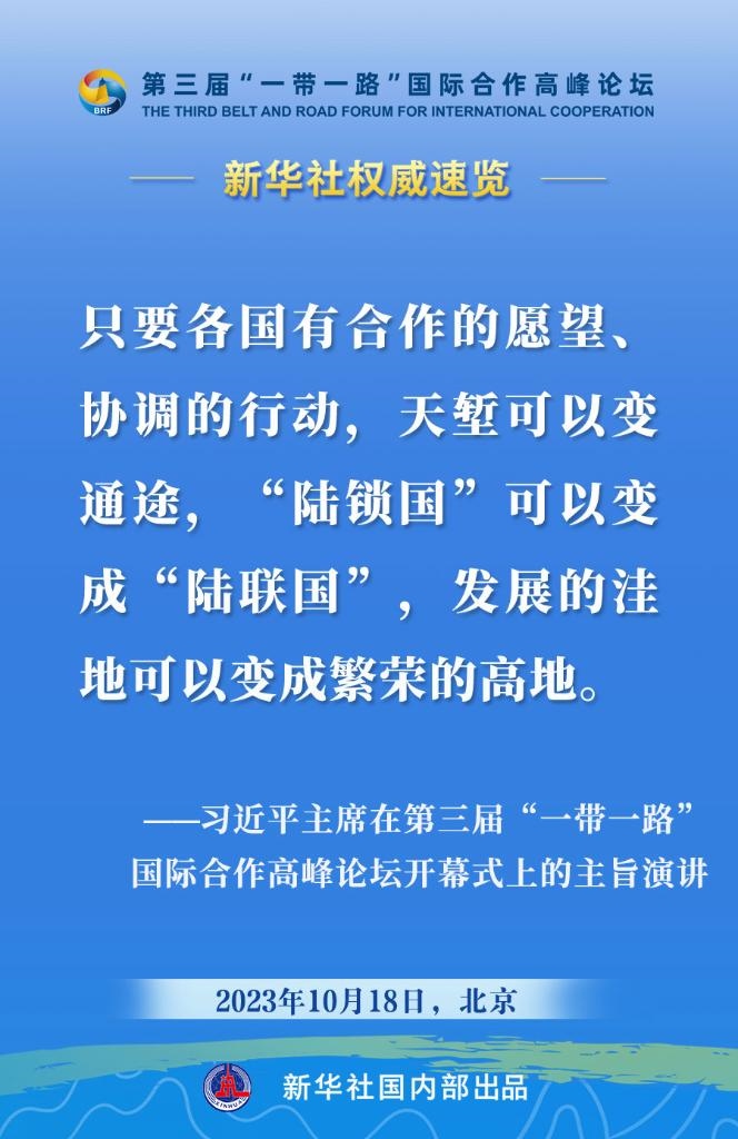 10月18日,國(guó)家主席習(xí)近平在第三屆“一帶一路”國(guó)際合作高峰論壇開(kāi)幕式上發(fā)表主旨演講。一起來(lái)看金句。