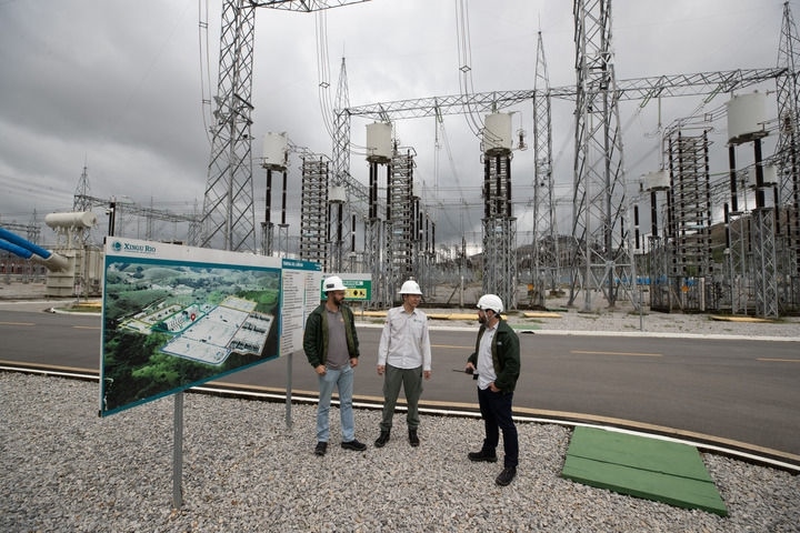2022年9月30日,在巴西里約熱內(nèi)盧美麗山特高壓輸電二期項目里約換流站,國網(wǎng)巴控公司換流站運(yùn)維主管(中)和巴方人員交談。新華社記者 王天聰 攝