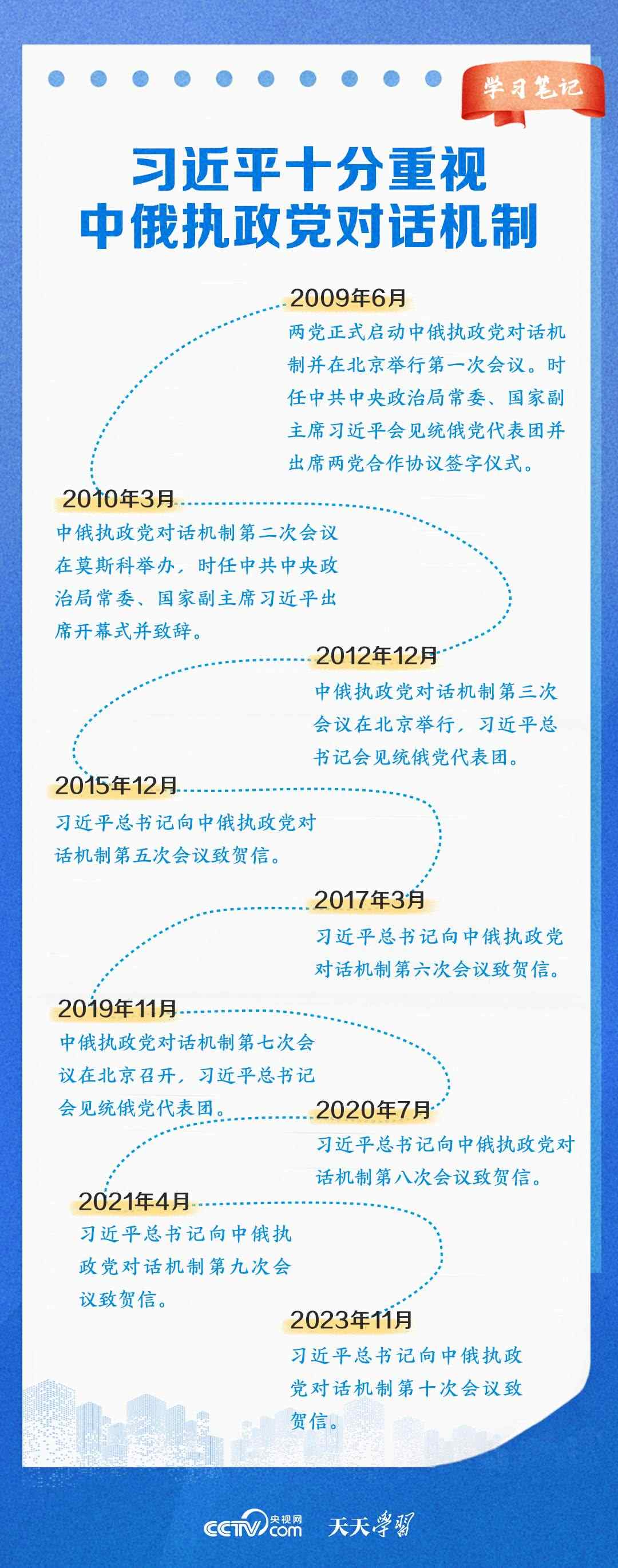 11月20日,中俄執(zhí)政黨對(duì)話機(jī)制第十次會(huì)議以視頻方式舉辦。習(xí)近平總書(shū)記同普京總統(tǒng)分別向會(huì)議致賀信。習(xí)近平總書(shū)記在賀信中強(qiáng)調(diào),中俄執(zhí)政黨對(duì)話機(jī)制已發(fā)展成為兩國(guó)鞏固政治互信、密切戰(zhàn)略協(xié)作、推進(jìn)互利合作的獨(dú)特渠道和平臺(tái)。