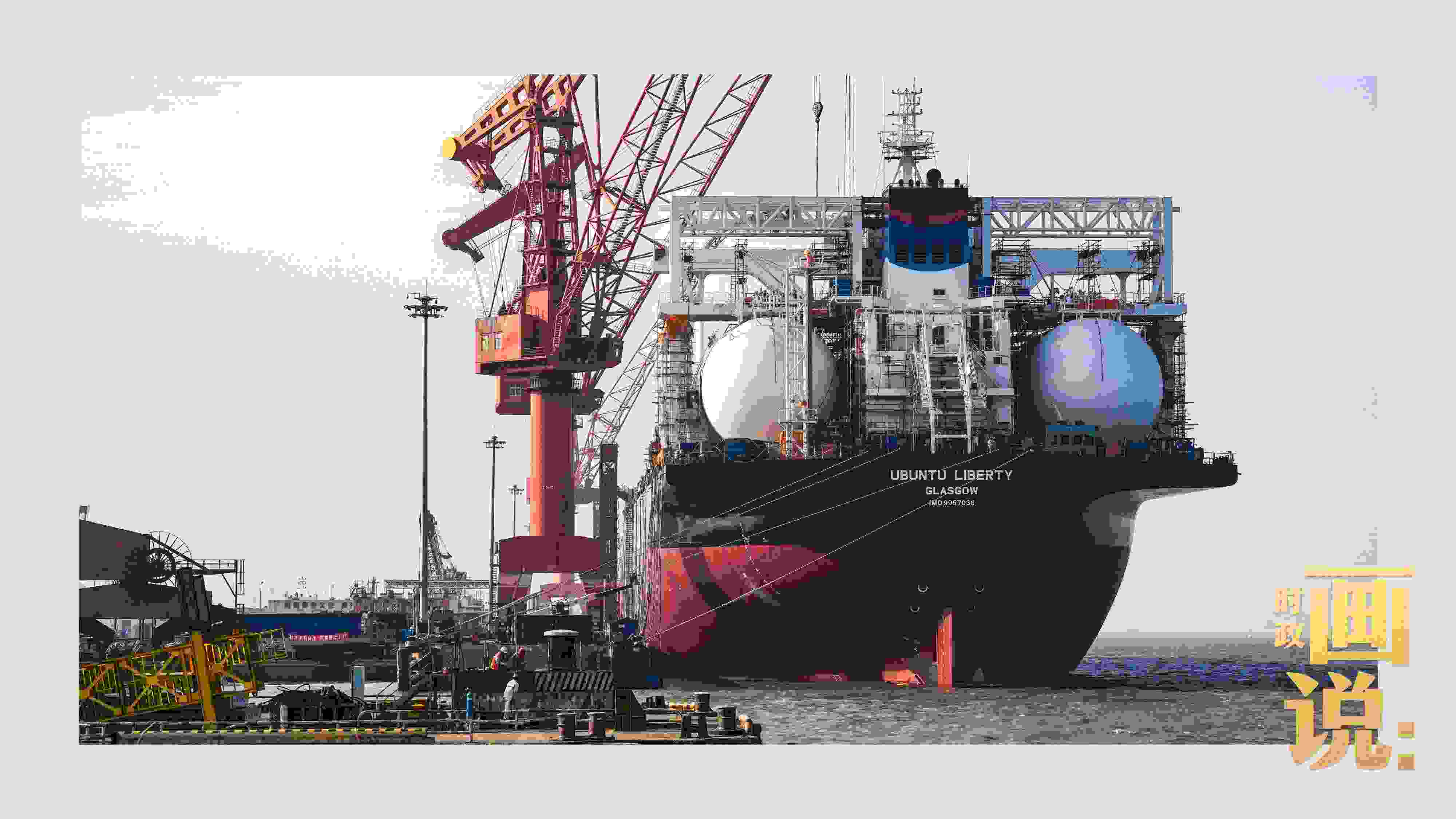 △外高橋船塢碼頭旁,一艘建造中的巨型雙燃料散貨船??吭诓次弧F謻|新區(qū),上海