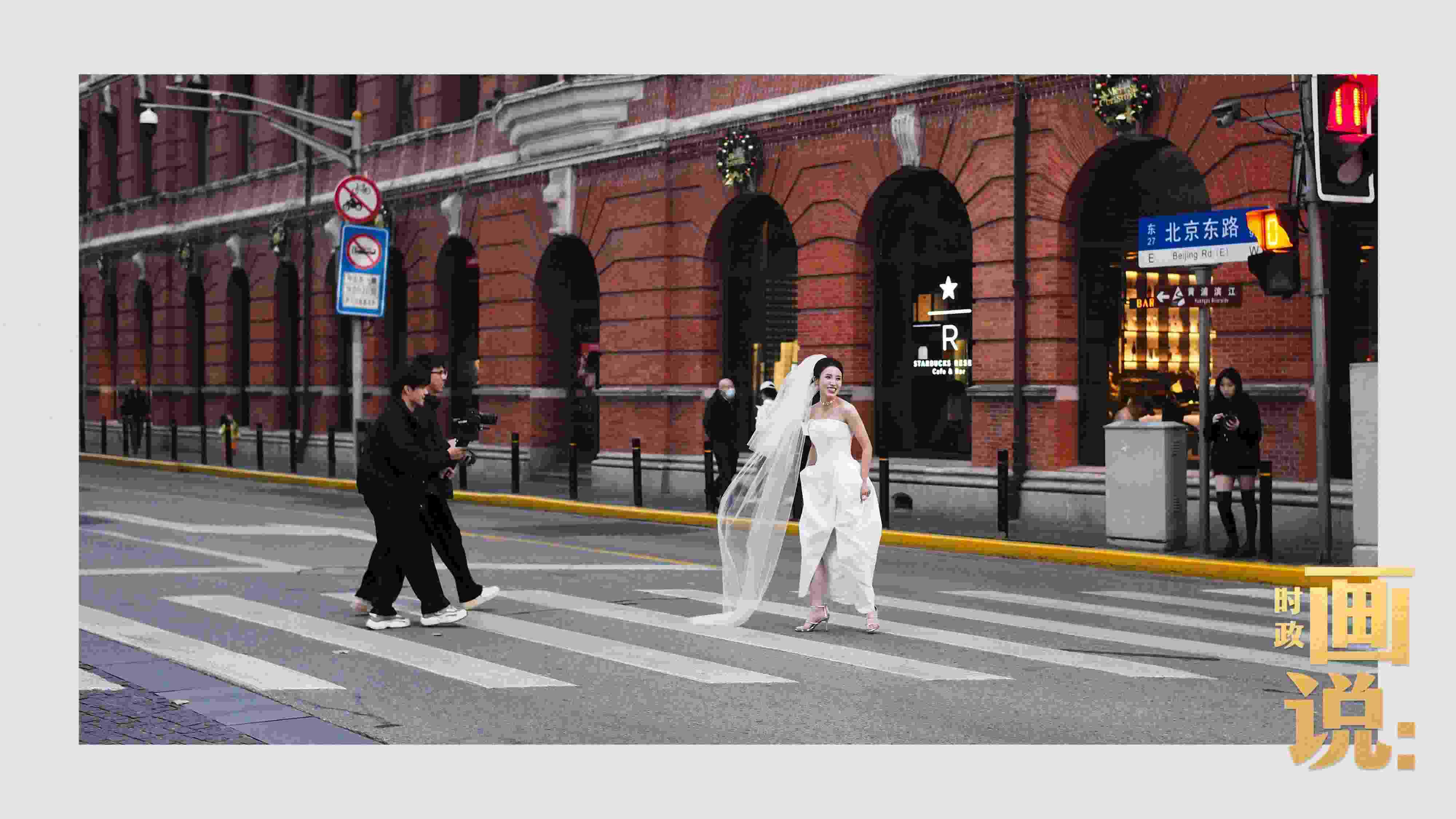 △身著婚紗的新娘穿行于古老的外灘街巷。包容、開放與時(shí)尚,是洋溢在這座城市中的別樣煙火氣息。黃浦區(qū),上海。