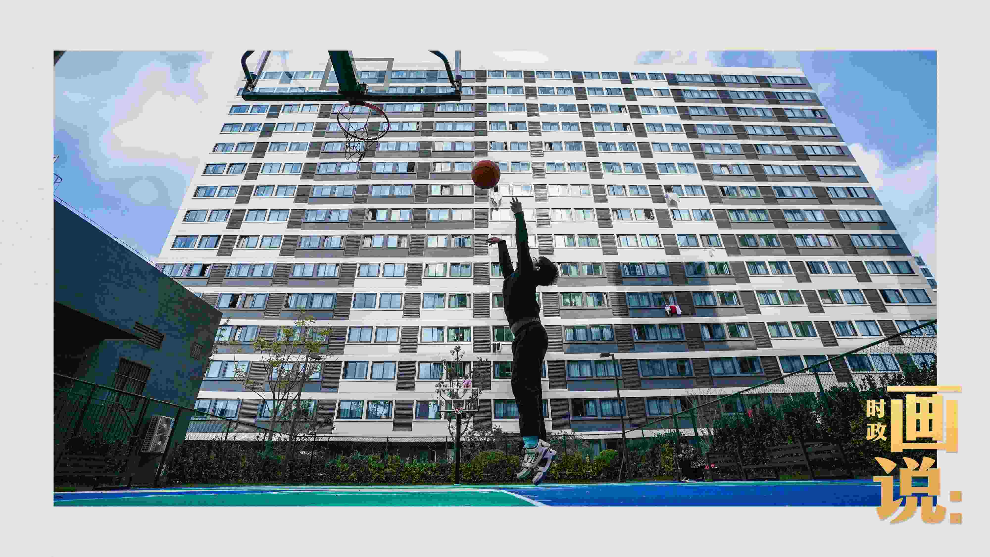 △社區(qū)籃球場(chǎng)上練習(xí)投籃的小男孩。閔行區(qū)新時(shí)代城市建設(shè)者管理者之家所在的社區(qū)是上海市首批大型保障性租賃住房項(xiàng)目之一,為許多來滬新市民、青年人和一線務(wù)工人員提供住房保障。閔行區(qū),上海。