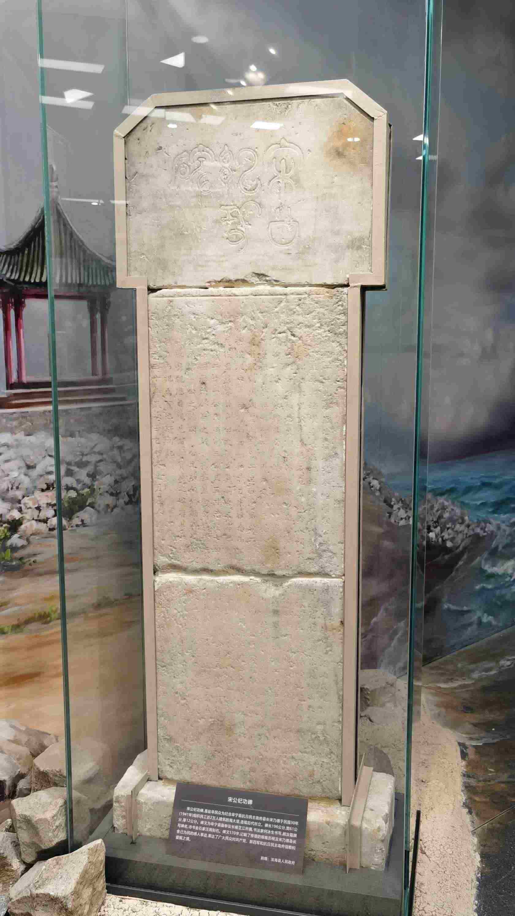 △新四軍紀念館里的宋公紀功碑。此碑是鹽阜民眾為紀念阜寧縣抗日民主政府縣長宋乃德于1941年組織修筑海防大堤所立。碑文記載了修筑大堤的艱難歷程,表達了鹽阜民眾對共產(chǎn)黨、新四軍和抗日民主政府的信賴和愛戴之情。(總臺央視記者郭鴻拍攝)