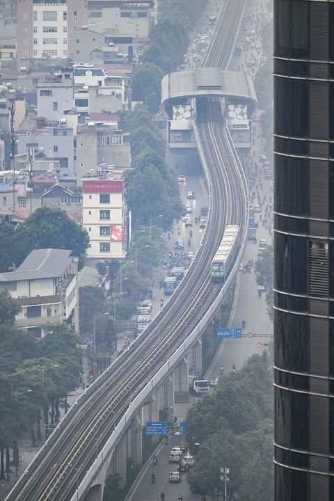 2023年12月9日,列車在越南河內(nèi)吉靈-河?xùn)|輕軌線上行駛。河內(nèi)吉靈-河?xùn)|線輕軌由中國中鐵六局集團有限公司承建,是中越兩國共建“一帶一路”的標志性項目。新華社記者 程一恒 攝
