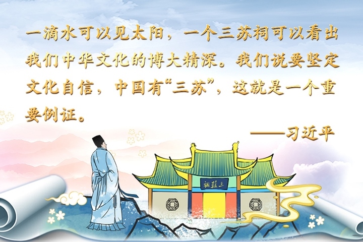 2022年6月8日,習(xí)近平總書記來到四川省眉山市三蘇祠,了解三蘇生平、主要文學(xué)成就和家訓(xùn)家風(fēng),以及三蘇祠歷史沿革、東坡文化研究傳承等。