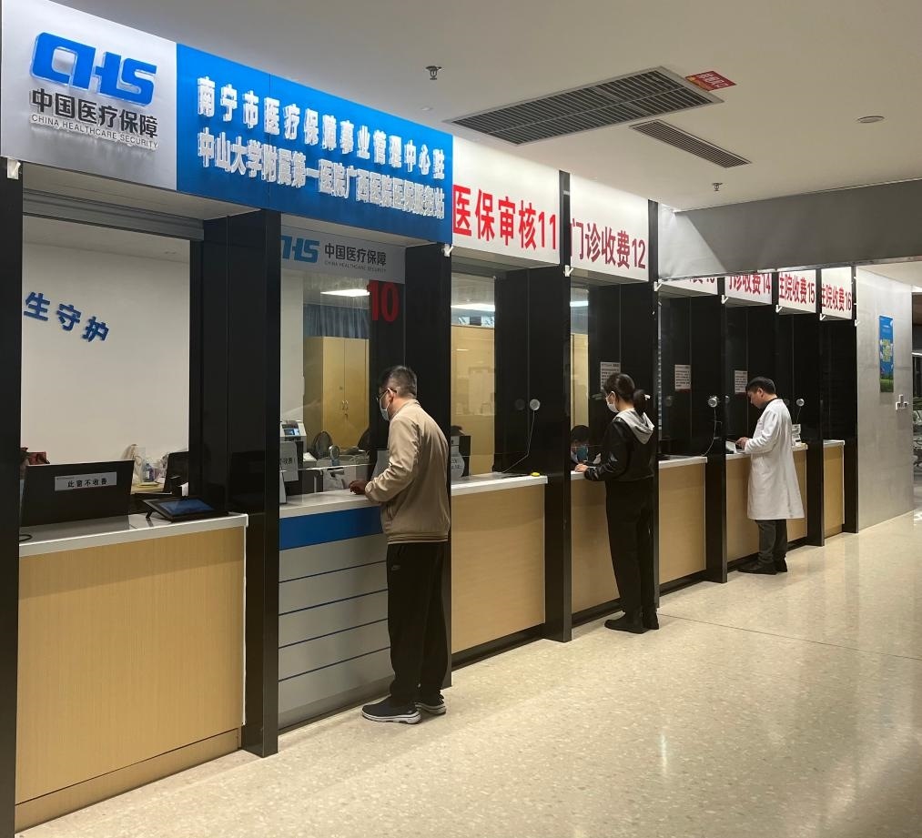 群眾在廣西壯族自治區(qū)南寧市醫(yī)療保障事業(yè)管理中心駐中山大學(xué)附屬第一醫(yī)院廣西醫(yī)院醫(yī)保服務(wù)站咨詢(xún)。(新華社記者 徐海濤攝)
