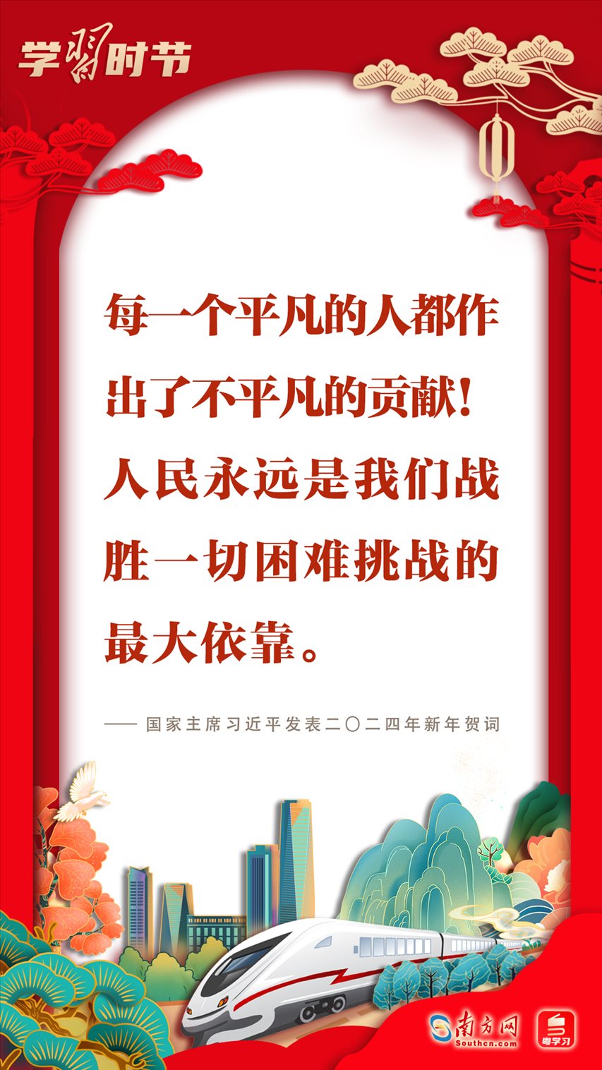 2023年12月31日晚,國家主席習(xí)近平在北京發(fā)表二〇二四年新年賀詞。賀詞飽含對廣大人民群眾的深情,彰顯對中國發(fā)展的堅定信心?;厥走^往,展望未來;砥礪前行,征程再起。讓我們一起在習(xí)近平主席的新年賀詞中感受直抵心靈的溫暖、催人奮進(jìn)的力量!