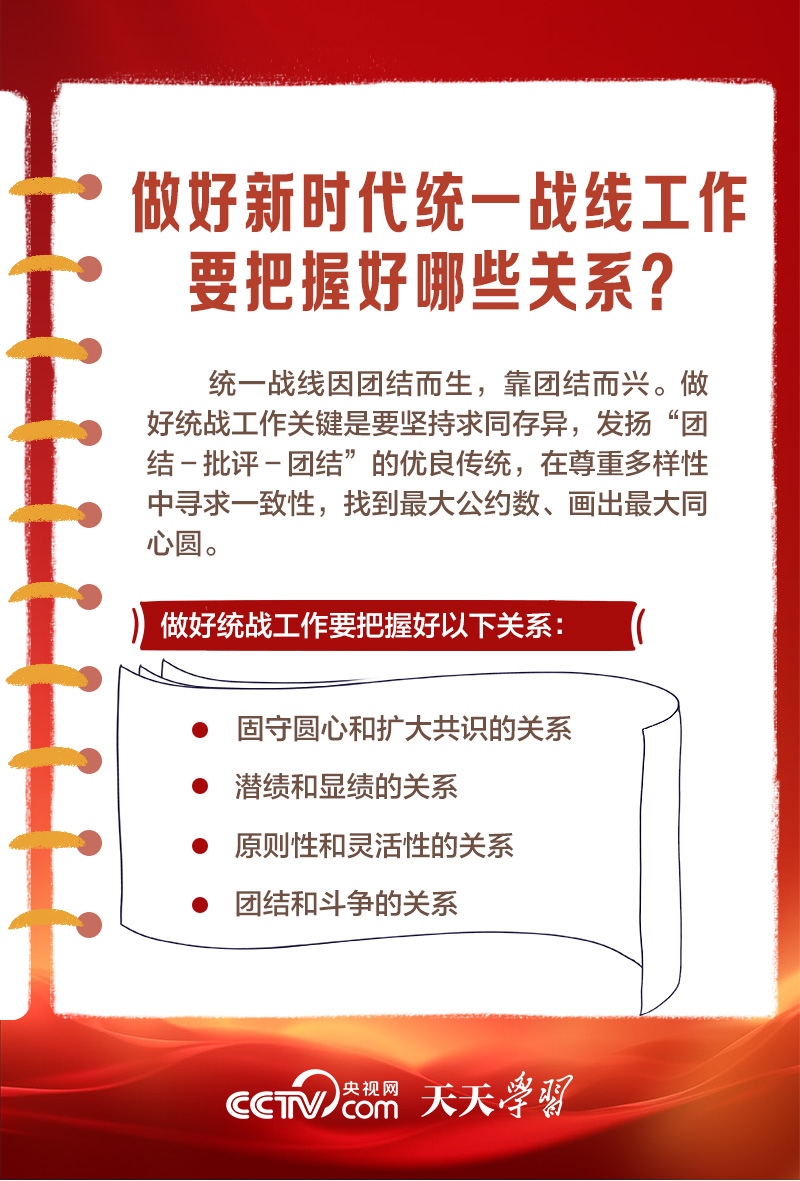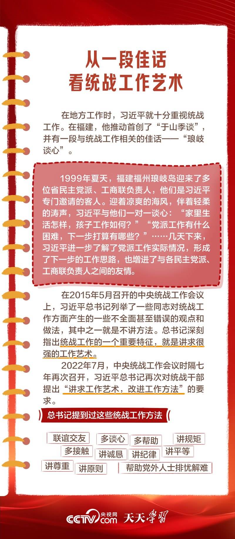 在百余年的奮斗歷程中,我們黨始終把統(tǒng)一戰(zhàn)線擺在重要位置,讓團(tuán)結(jié)的旋律始終高昂,共同奮斗的力量始終激蕩。從“重要法寶”到“強(qiáng)大法寶”,體現(xiàn)出總書記對(duì)黨的統(tǒng)戰(zhàn)工作一以貫之的高度重視。