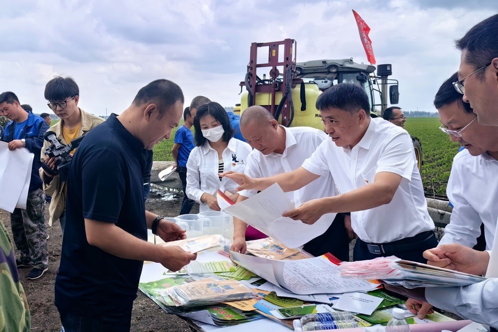 黑龍江省農(nóng)業(yè)農(nóng)村廳種植業(yè)管理處工作人員在哈爾濱市雙城區(qū)地頭,向農(nóng)民發(fā)放科學(xué)用農(nóng)藥資料(2023年6月11日攝)。學(xué)習(xí)貫徹習(xí)近平新時(shí)代中國特色社會主義思想主題教育工作會議召開以來,黑龍江省農(nóng)業(yè)農(nóng)村廳種植業(yè)管理處將理論學(xué)習(xí)與實(shí)際工作相結(jié)合,深入“田間地頭”調(diào)查研究、深入推進(jìn)“千萬噸糧食增產(chǎn)計(jì)劃”,助力黑龍江省當(dāng)好維護(hù)國家糧食安全“壓艙石”,將主題教育成果融入到維護(hù)國家糧食安全的具體實(shí)踐中。新華社發(fā)